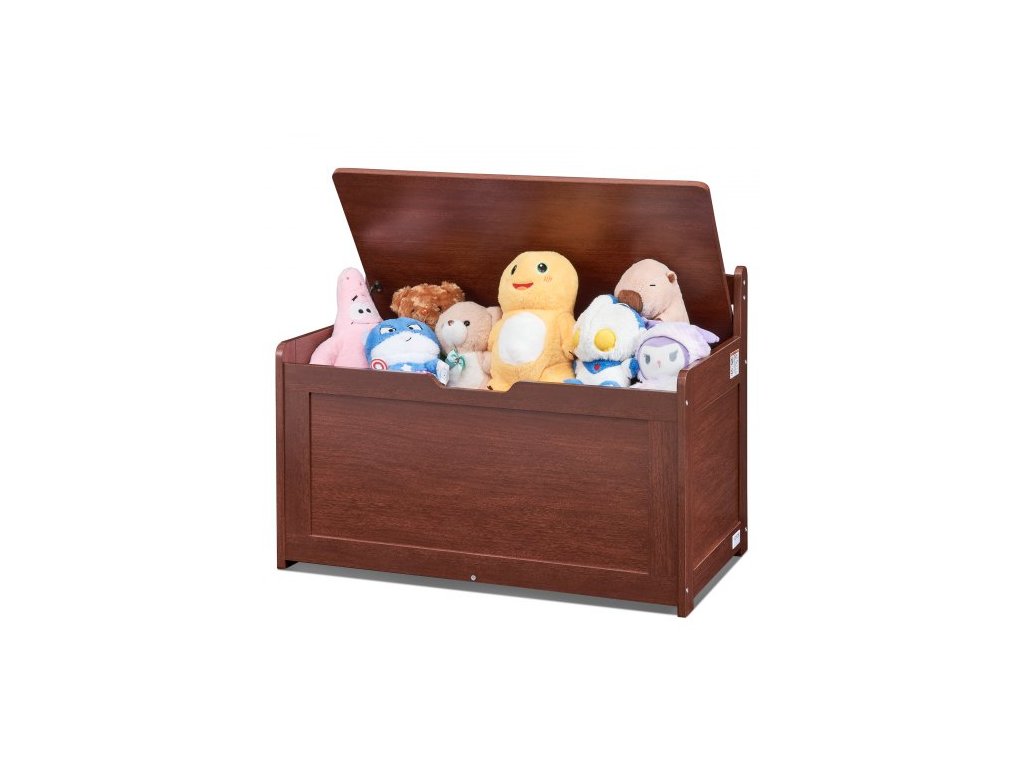 Dřevěná truhla na hračky pro děti, úložný box na hračky pro batolata s odklápěcím víkem a bezpečnostním pantem, velká dětská úložná lavice do herny, ložnice, obývacího pokoje nebo předsíně, třešeň