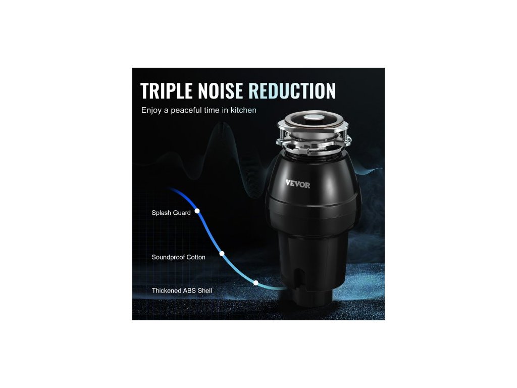 Drtič odpadu 1/2 HP Kontinuální drtič potravinového odpadu 3820 ot./min. 3 šrouby