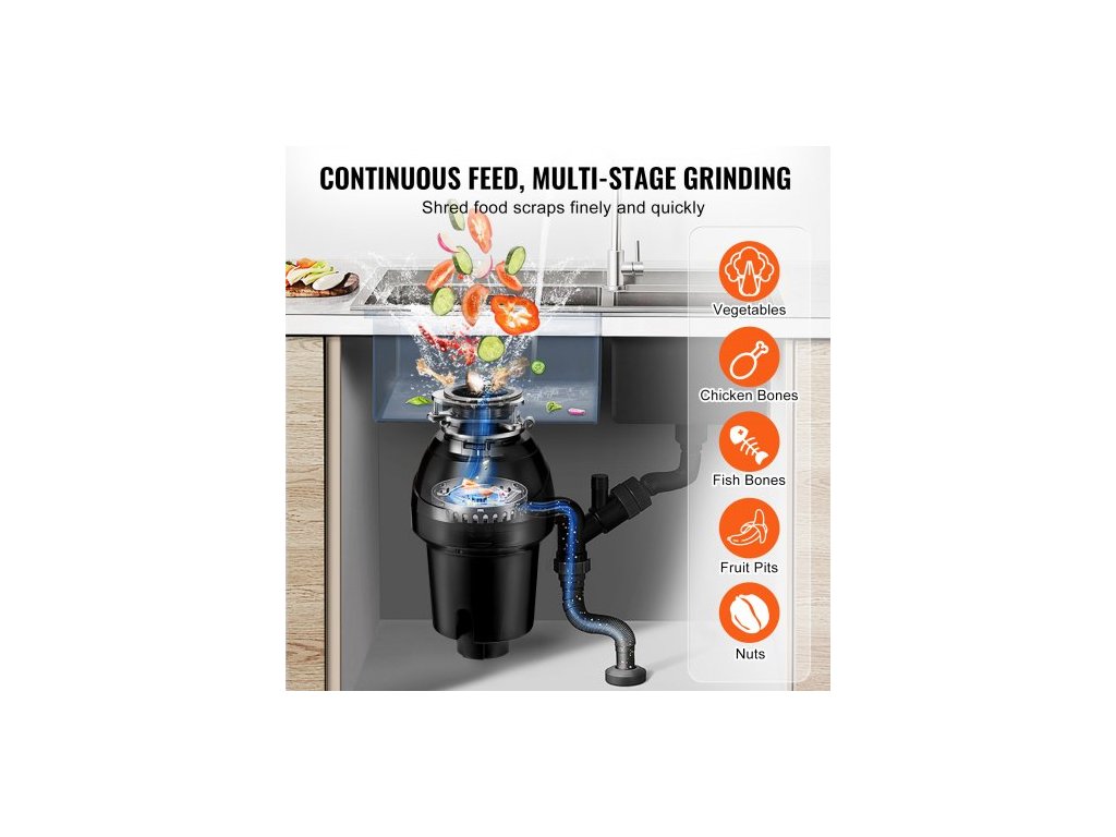 Drtič odpadu 1,25 HP Kontinuální drtič potravinového odpadu 4060 ot./min EZ Connect