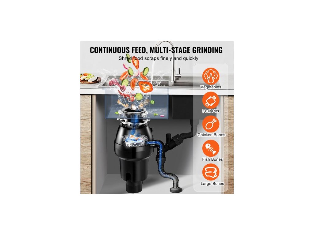 Drtič odpadu 3/4 HP Kontinuální drtič potravinového odpadu 3600 ot./min. 3 šrouby