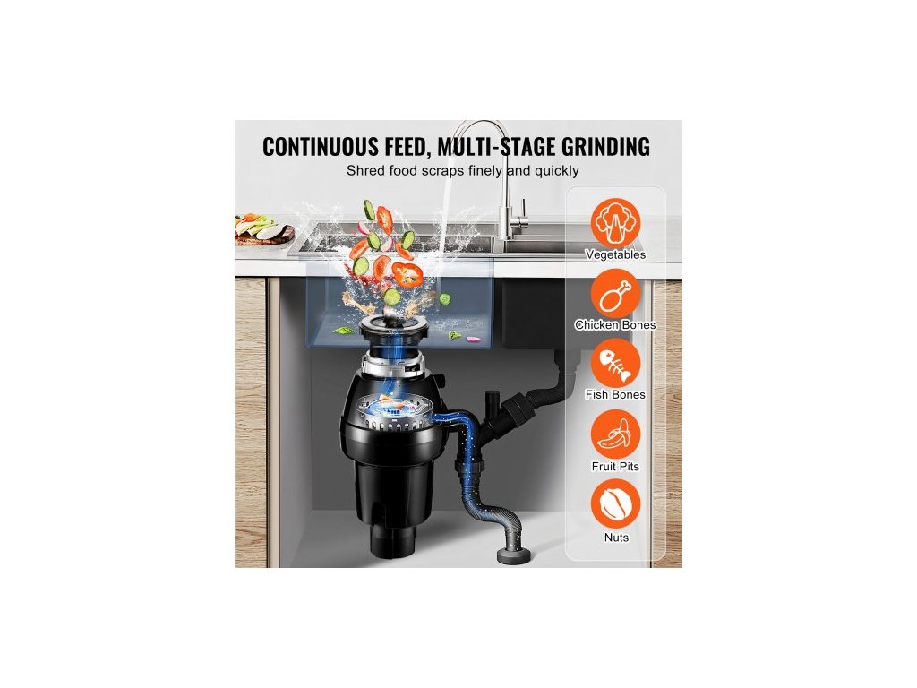 Drtič odpadu 3/4 HP Kontinuální drtič potravinového odpadu 3930 ot./min EZ Connect
