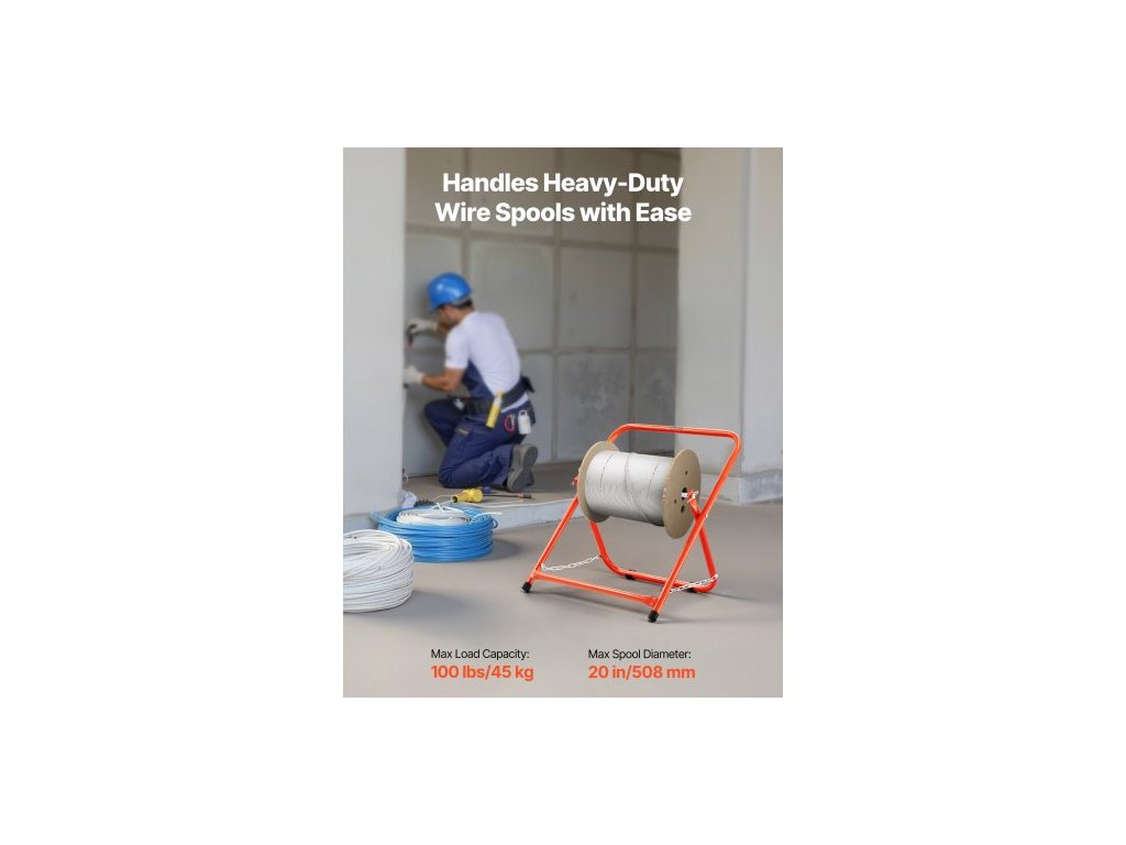 Držák kabelů , odolný ocelový rám, držák cívek pro elektrické vodiče, přenosný dávkovač drátu pro cívky o průměru až 508 mm / 20 palců, nosnost 45 kg / 100 liber pro kabelové bubny, maloobchod s elektrotechnikou a průmyslovými výrobky
