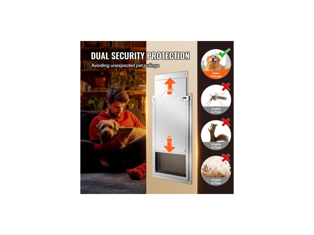 Dvířka pro domácí mazlíčky , hliníkový rám 8,27" x 11,93" se systémem zámku a klapek, vodotěsná dvířka pro psy, snadná instalace do vnitřních nebo vnějších dveří, dvířka vhodná pro kočky, psy a koťátka (bílá - malá)