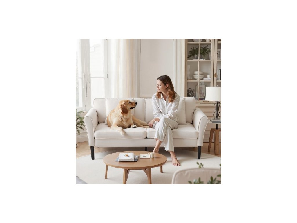 Dvousedák , malá rozkládací pohovka 176 cm do obývacího pokoje, sametová látková dvoumístná pohovka s vlnitou pružinou, měkkými polštáři a pevným rámem, pohodlná dvousedačka do ložnice, kanceláře nebo bytu, bílá