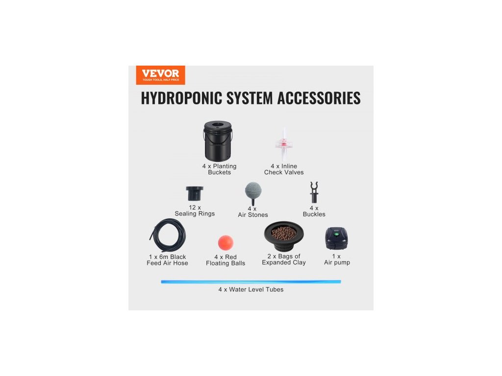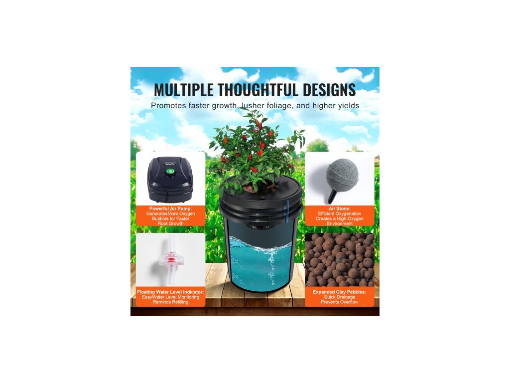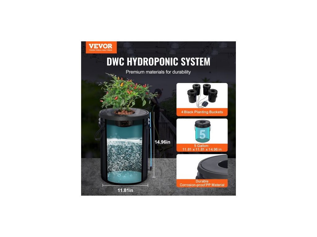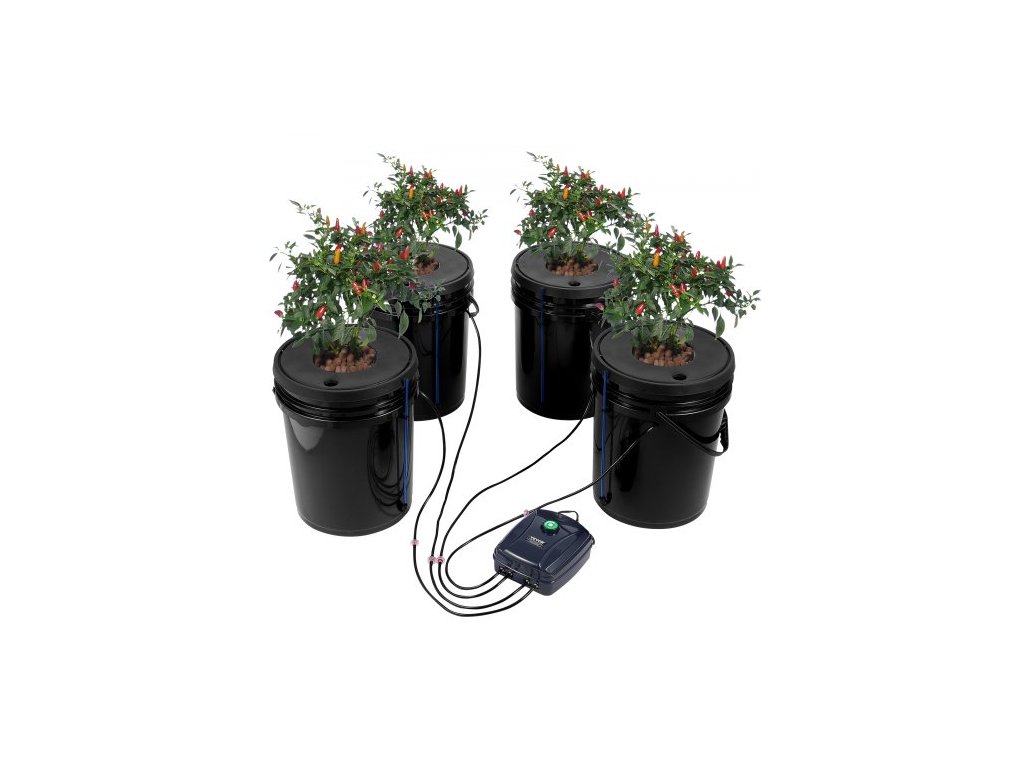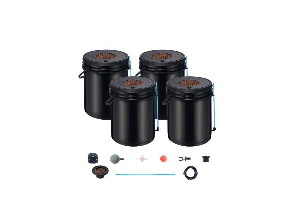 Hydroponický pěstební systém DWC, hydroponický pěstební systém, hlubokovodní kultura, 4 kbelíky o objemu 5 galonů, systém DWC se vzduchovým čerpadlem, vzduchovými kameny a hladinovým zařízením pro listovou zeleninu