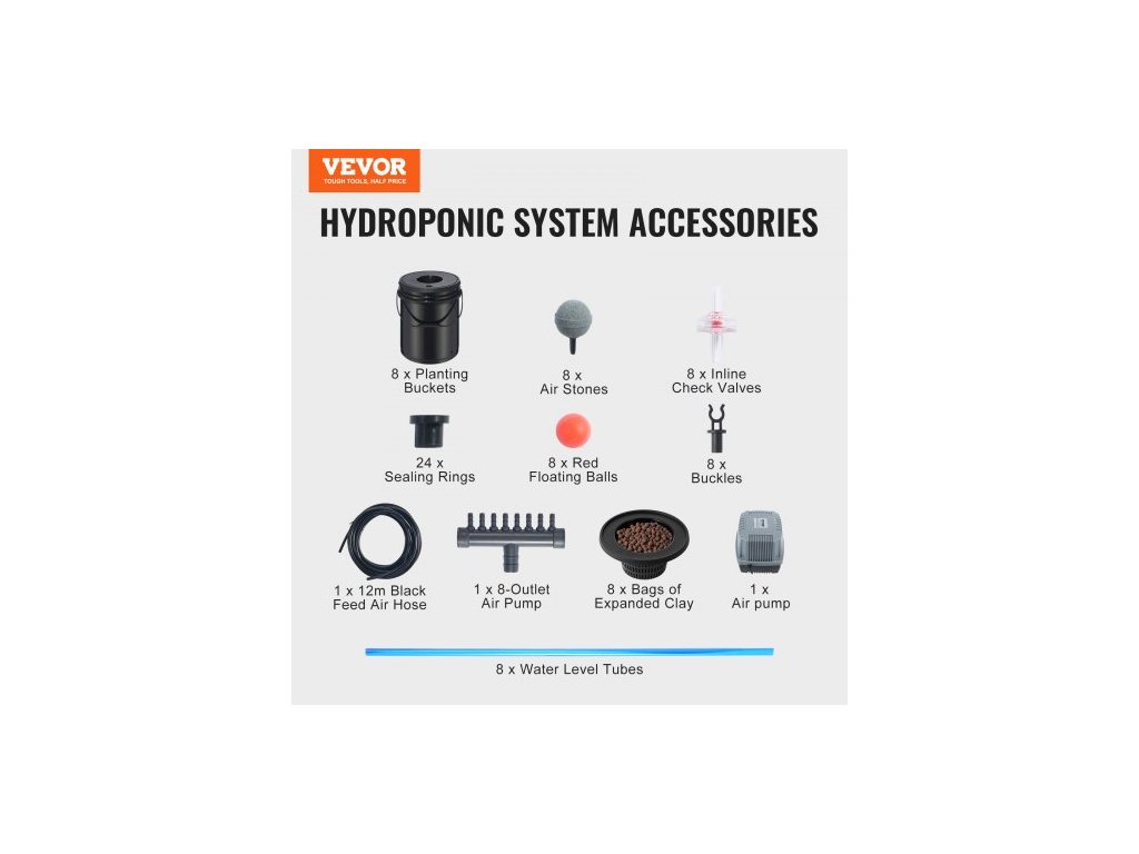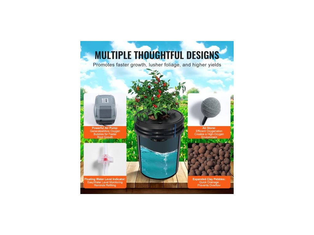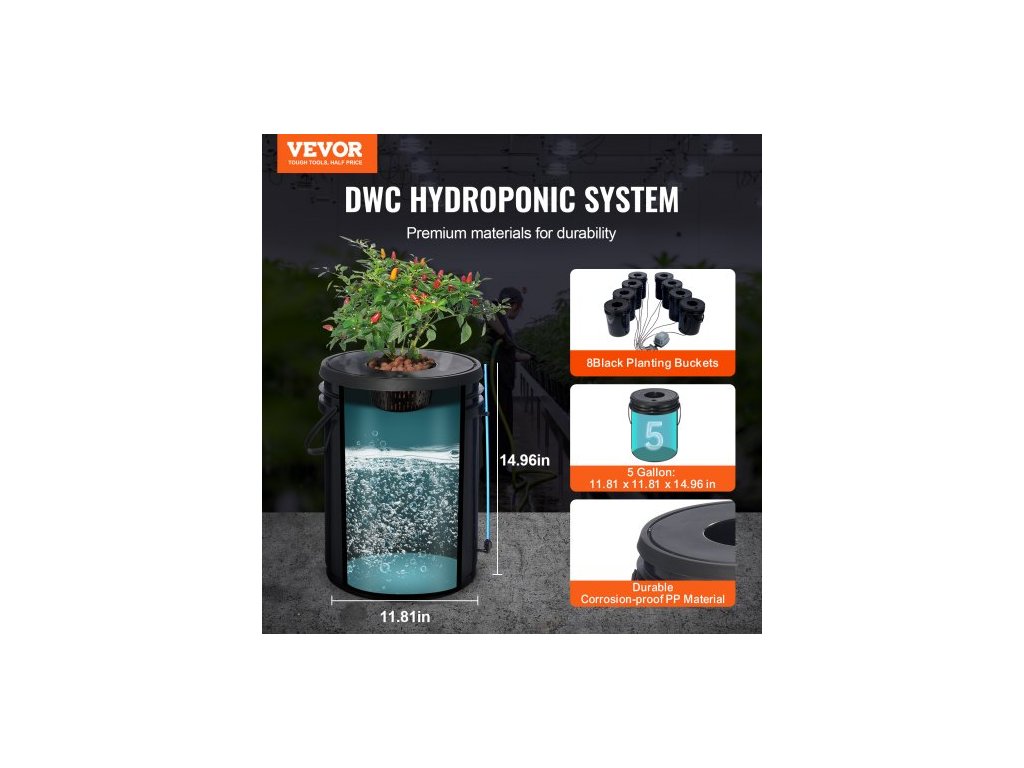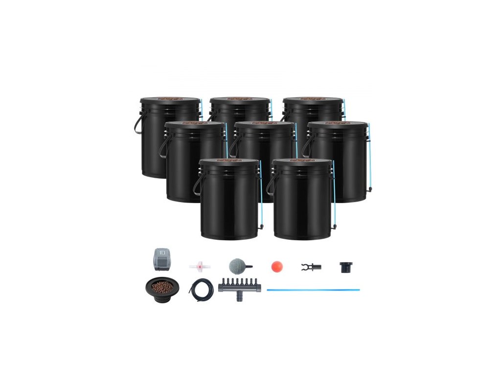 Hydroponický pěstební systém DWC, hydroponický pěstební systém, hlubokovodní kultura, 8 kbelíků o objemu 5 galonů, systém DWC se vzduchovým čerpadlem, vzduchovými kameny a hladinovým zařízením pro listovou zeleninu