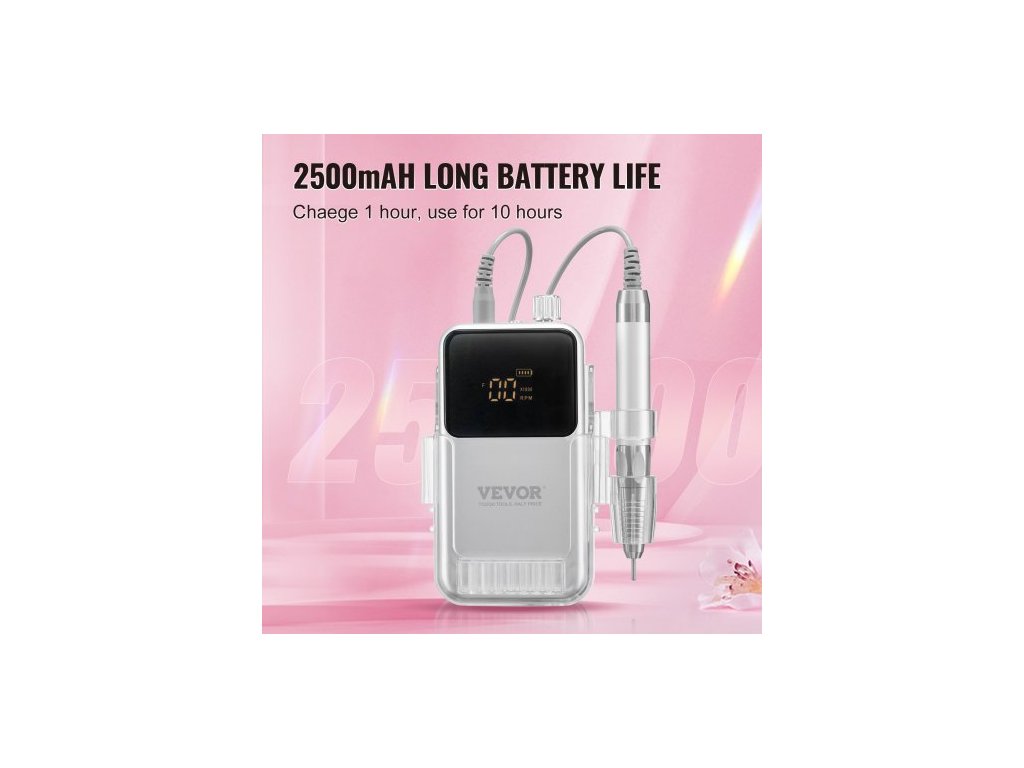 Elektrická akumulátorová vrtačka na nehty - s vysokorychlostním bezkartáčovým motorem 35000RRM, dobíjecí pilník na nehty s 6 bity a 50 kusy brusného pásu na akrylové gelové nehty, přenosný nástroj pro manikúru a pedikúru