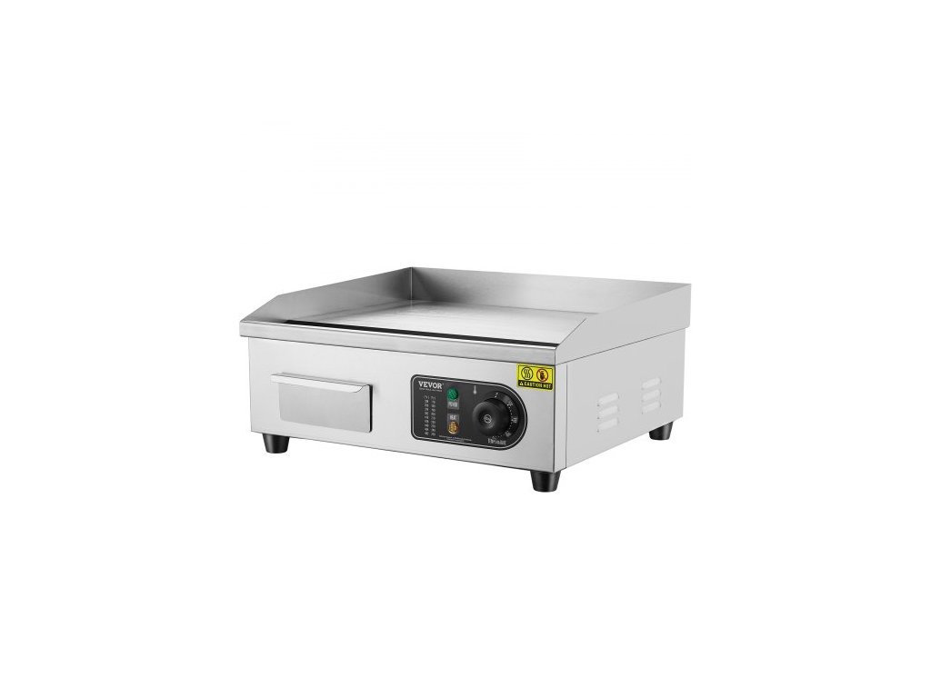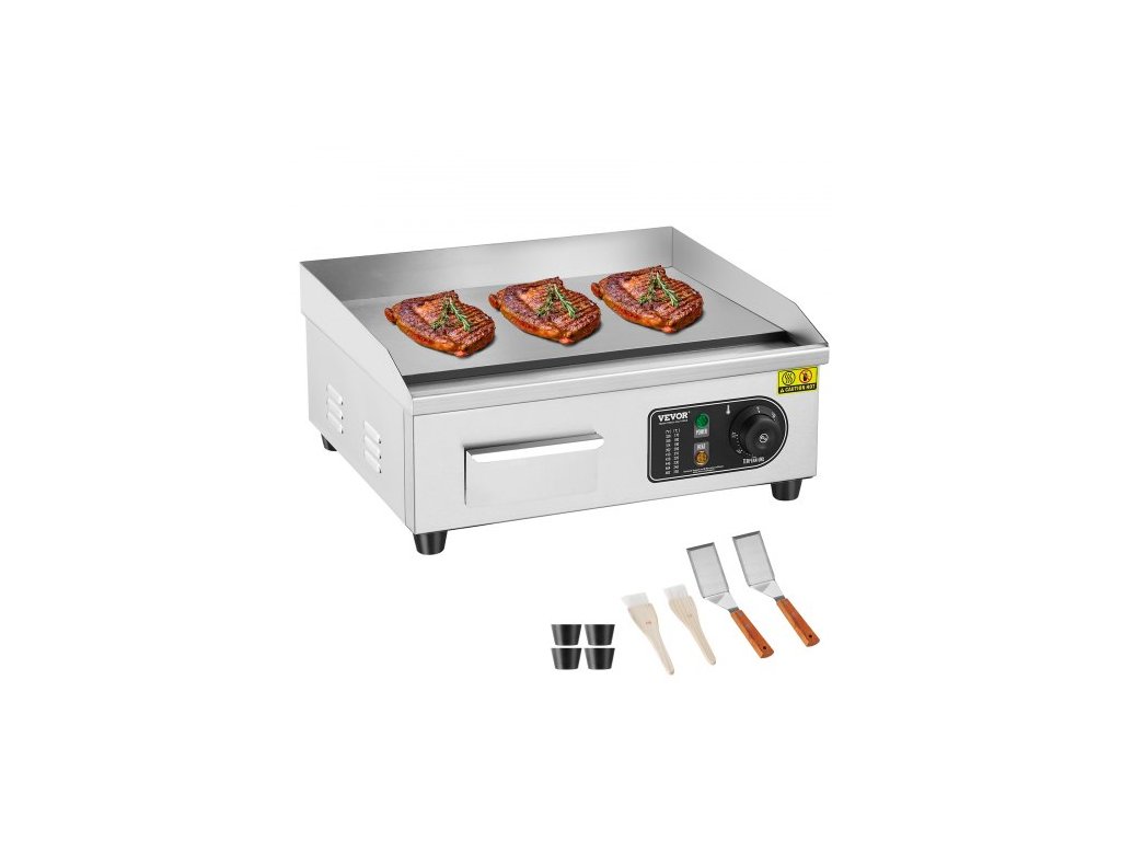 Elektrická grilovací deska pro komerční použití, 2800W, stolní plochá deska, nastavitelná teplota 122°F-572°F, nerezová grilovací deska 17,72 x 11,81 x 0,39 palce se 2 lopatkami a 2 kartáči pro domácnost nebo restauraci