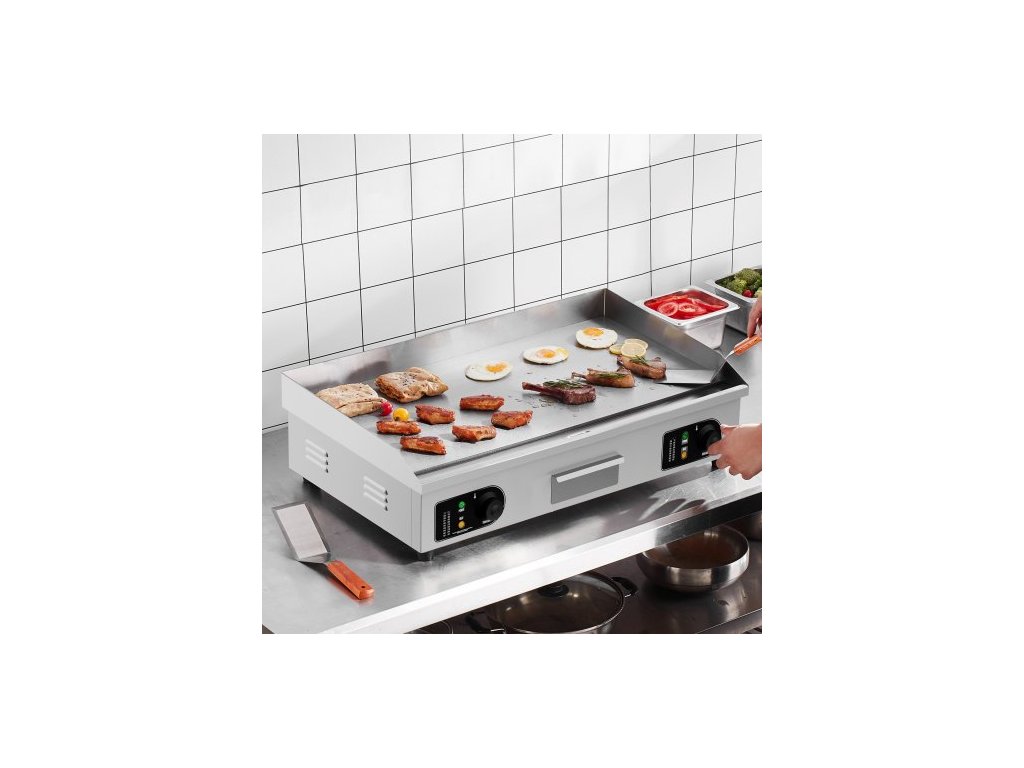 Elektrická grilovací deska pro komerční použití, 4400W, stolní plochá deska, nastavitelná teplota 122°F-572°F, nerezová grilovací deska 28,74 x 15,75 x 0,39 palce se 2 lopatkami, pro domácnost nebo restauraci (bez zástrčky)