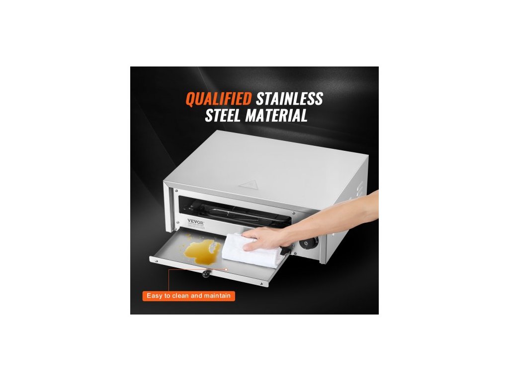 Elektrická pec na pizzu na pracovní desku, 12 palců, 1500 W, teplotní rozsah 0–300 °C, konstrukce z nerezové oceli a snadno čistitelný plech na drobky, vhodná pro komerční i domácí použití