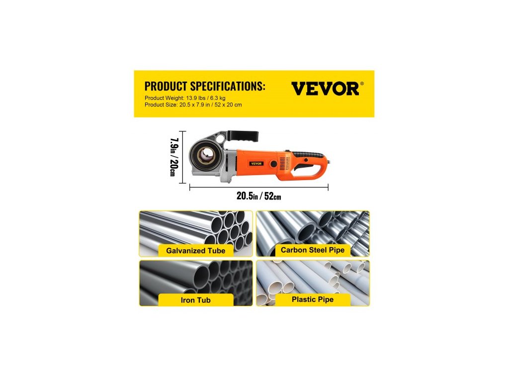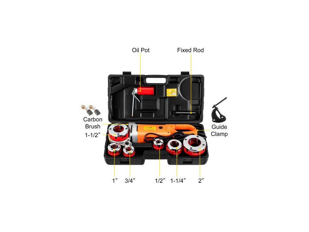 Elektrický závitořez , závitořez 2300 W, výkonná ruční sada s pohonem, závitořez 220 V, přenosný závitořez s 6 závitořeznými čelistmi 1,27–5,1 cm