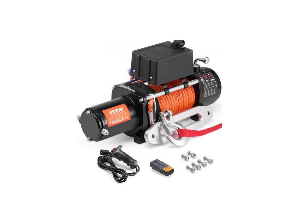 Vodotěsnost: IP55, Dálkové ovládání: Bezdrátové + kabelové dálkové ovládání, Materiál lana: Polyethylen, 12 pramenů, Číslo modelu položky: S10000, Napětí/výkon: 12 V DC/3 HP, Převodový poměr: 195,8:1, Rozměry položky: 21,1 x 6,3 x 8,6 palce/53,7 x 16 x 21,8 cm, Jmenovitá tažná síla: 10000 lbs/4536 kg, Specifikace lana: ?7/20 palce x 65 stop/?0,9 x 1981,2 cm, Čistá hmotnost: 20,4 kg, Hlavní materiál: Slitina hliníku, oceli, mědi, plastu (PPS a PA atd.), Dosah bezdrátového dálkového ovládání: 20 m