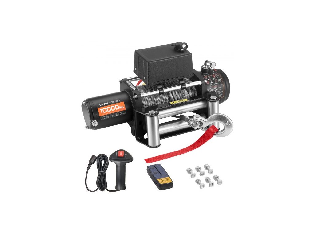 Jmenovitá tahová síla: 10000 lbs / 4500 kg, Specifikace lana: Ocelové lano, průměr: ?21/64 in / 8,3 mm; Délka: 19,8 m, Hlavní materiály: Hliníková slitina, ocel, plast, Krytí: IP55, Číslo modelu položky: S10000, Specifikace motoru: 12V DC, 3 HP motor z čisté mědi, Převodový poměr: 265:1, Rozměry položky: 53,7 x 16 x 28 cm (s ovládací jednotkou), Režimy ovládání: Bezdrátové a kabelové dálkové ovládání, Čistá hmotnost: 29,2 kg