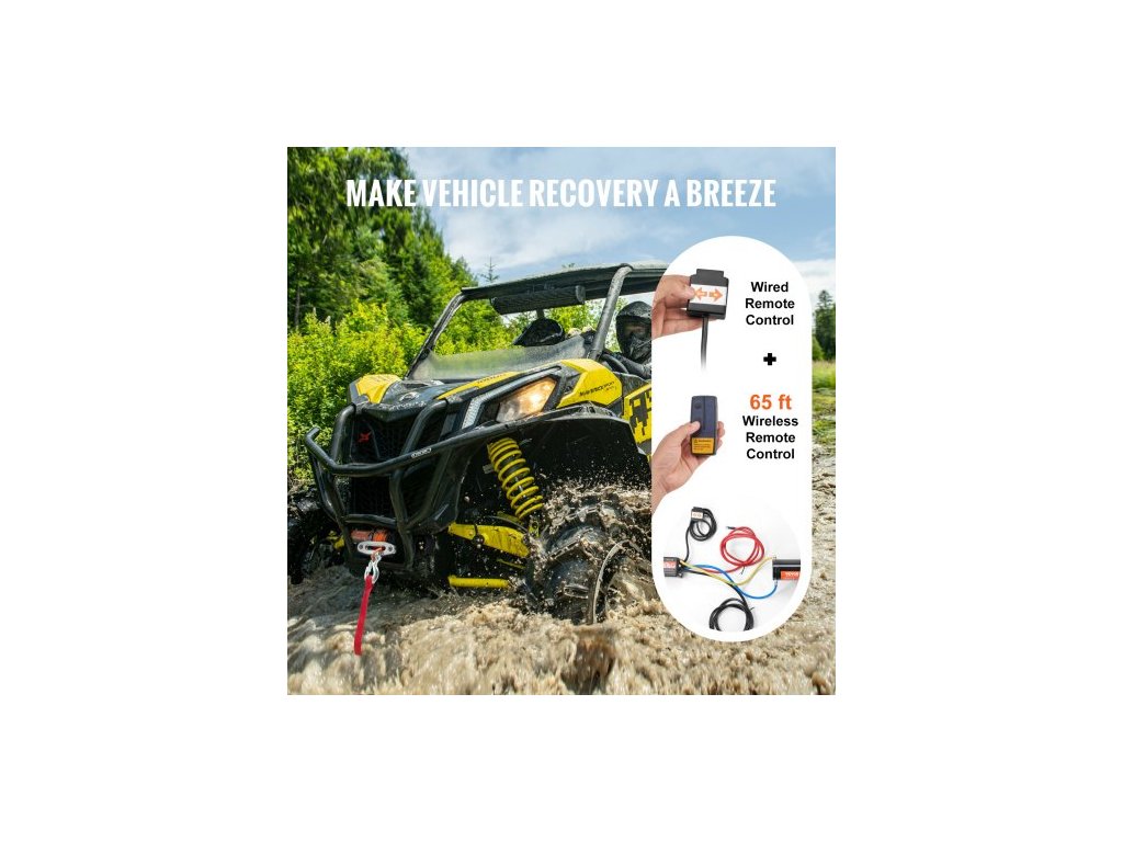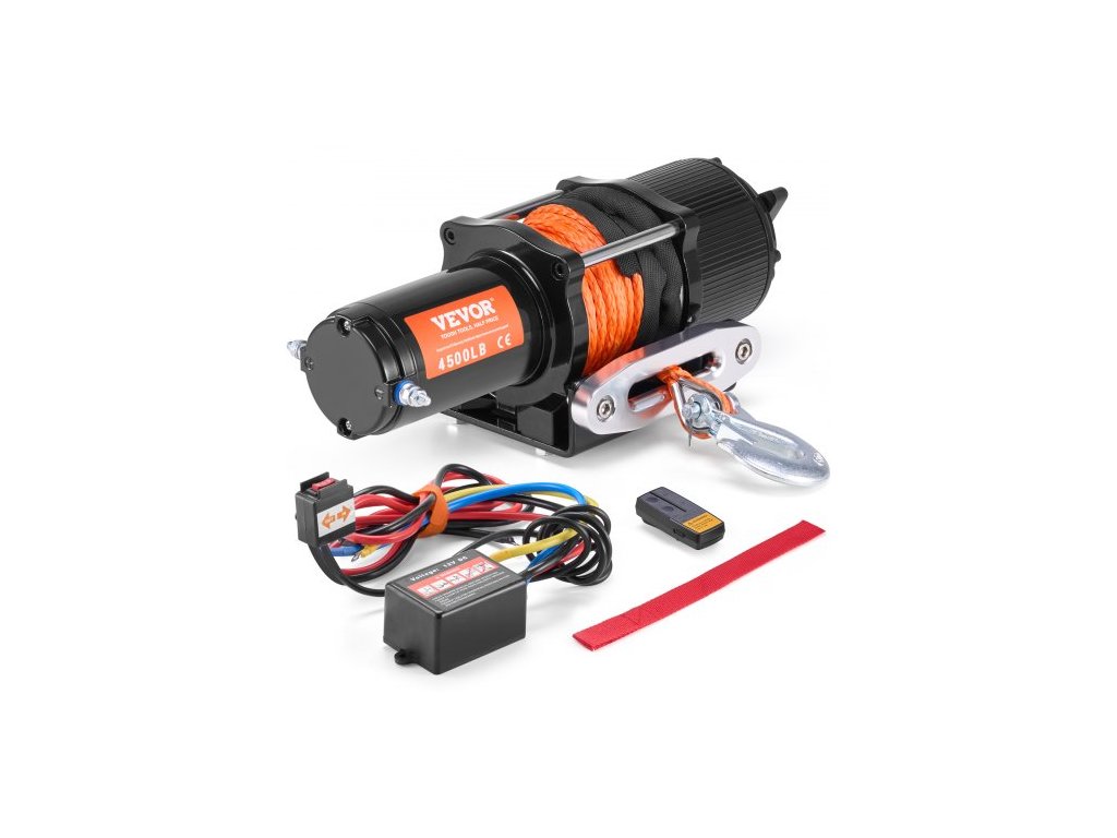 Elektrický naviják pro čtyřkolky, UTV, 2041,2 kg, syntetické lano, vodotěsné, dálkové ovládání