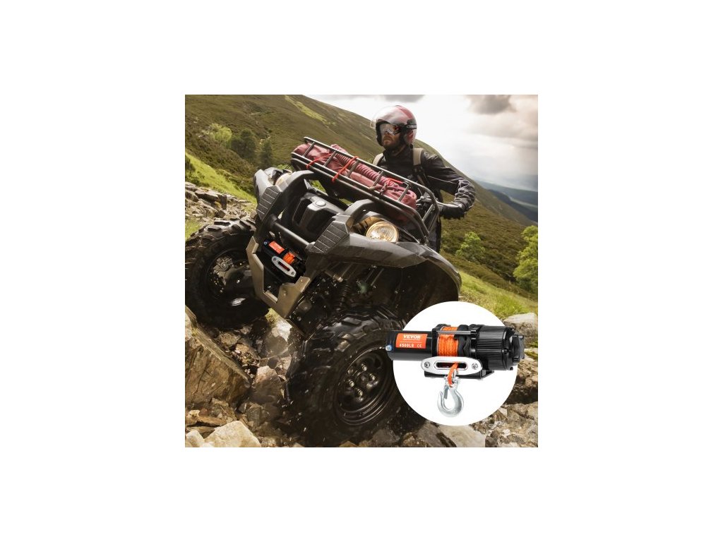 Elektrický naviják pro čtyřkolky a UTV 2041,2 kg, syntetické lano, vodotěsné dálkové ovládání