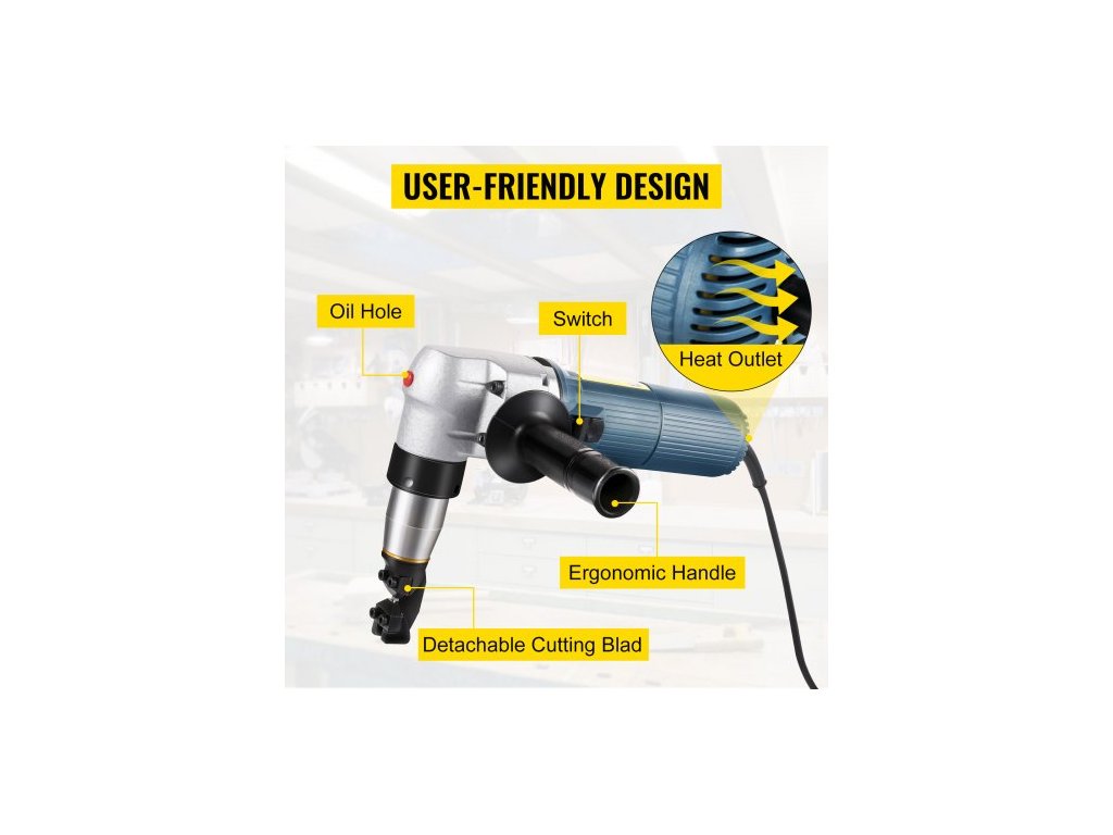 Elektrický ostřihovač kovů 625W, ostřihovač kovů, řezačka kovů, 1000 ot./min., vysokorychlostní rotor, ostřihovač kovů 110V s vyměnitelnými čepelemi, úložný kufřík, ostřihovač plechů pro řezání nerezové oceli, hliníku a plastu