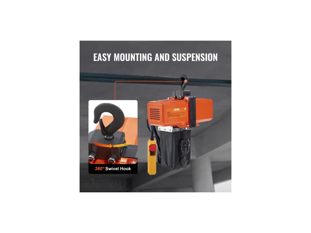Elektrický řetězový kladkostroj , jednofázový, jeřábový, nosnost 499 kg, zdvih 457,2 cm