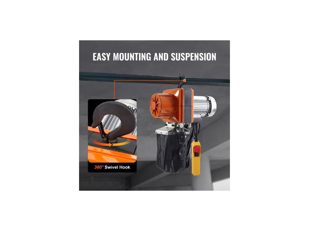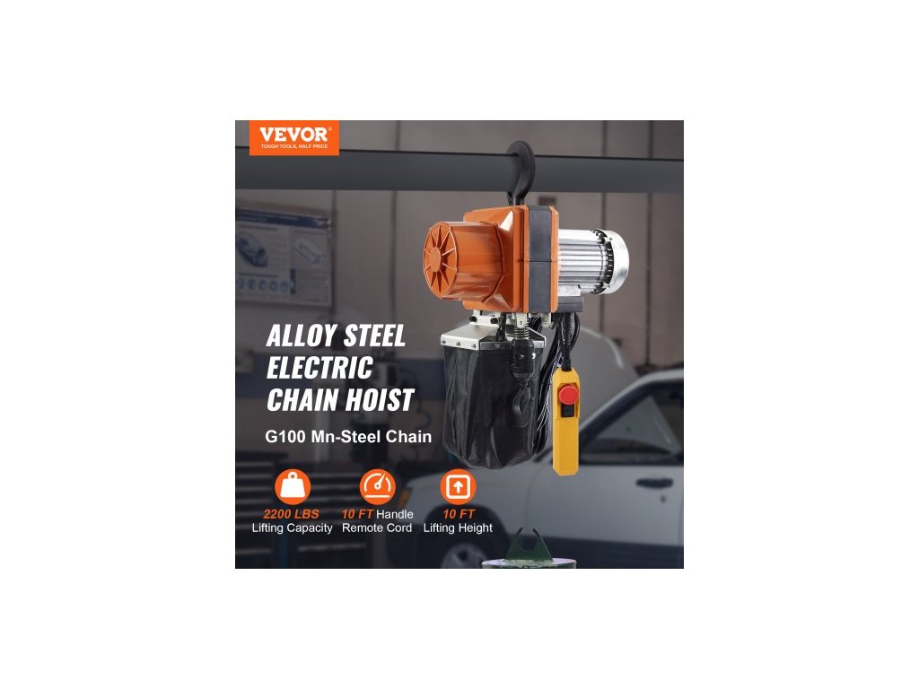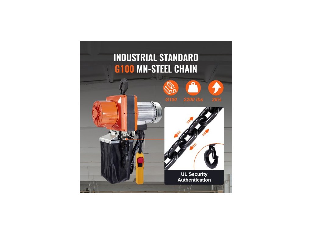 Elektrický řetězový kladkostroj , nosnost 1026 kg, výška zdvihu 3 m, rychlost 3 m/min, 230 V, jednofázový mostový jeřáb s řetězem G100, 3 m kabelové dálkové ovládání pro garáž, obchod, hotel, dům