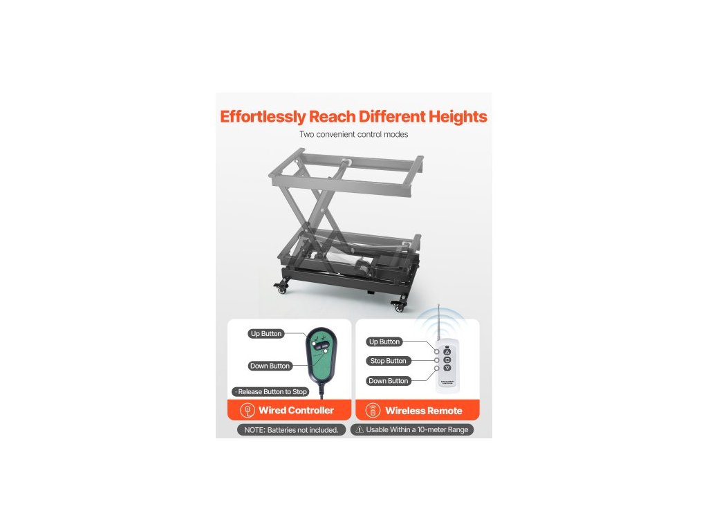 Elektrický zvedací stůl , nosnost 150 kg, nůžkový zvedací stůl, výškově nastavitelná zvedací plošina 20–66 cm, zvedák na konferenční stolek se 4 kolečky, pro manipulaci s materiálem a jeho přepravu, černý