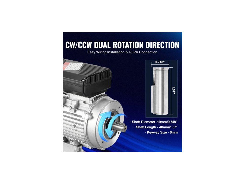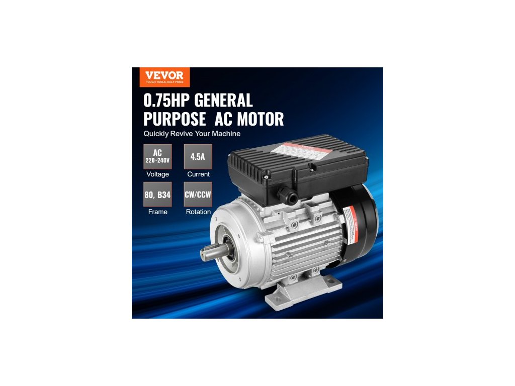 Elektromotor 0,55 kW 1400 ot./min, AC 220~240V 4,5A, 80, rám B34, jednofázový motor vzduchového kompresoru, 19mm hřídel s perem, otáčení ve směru/proti směru hodinových ručiček pro zemědělské stroje a běžná zařízení