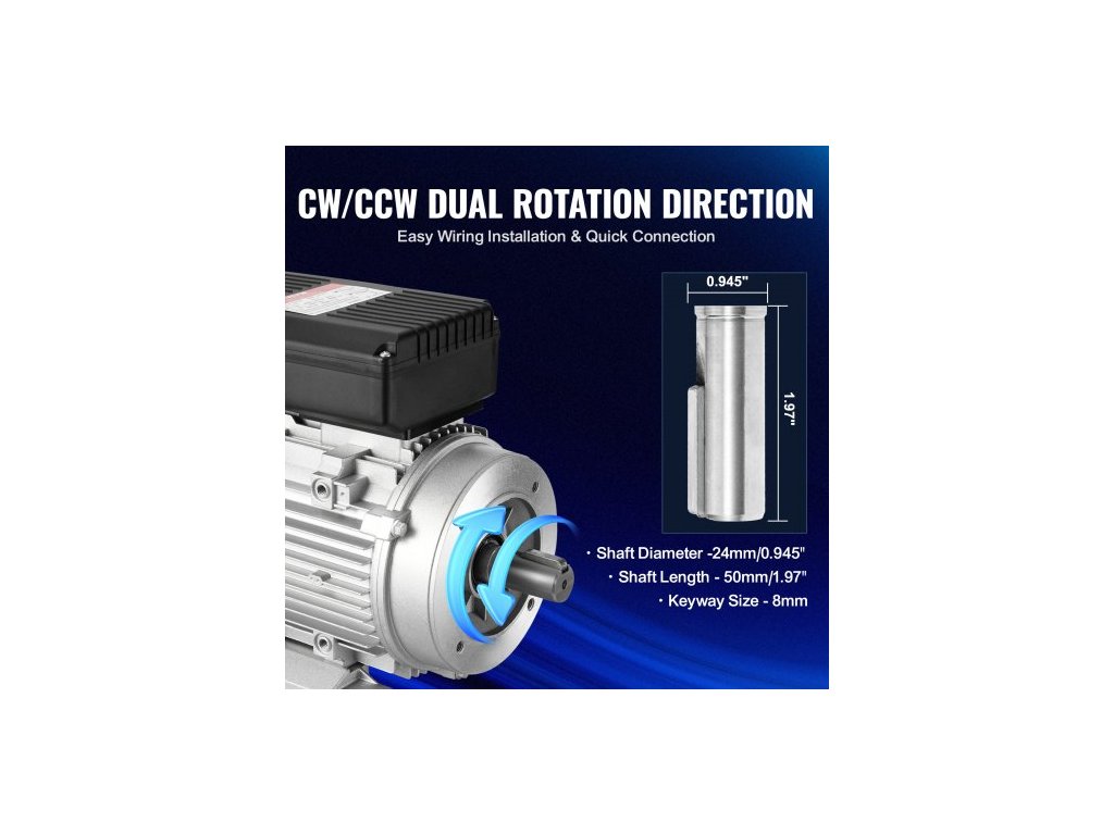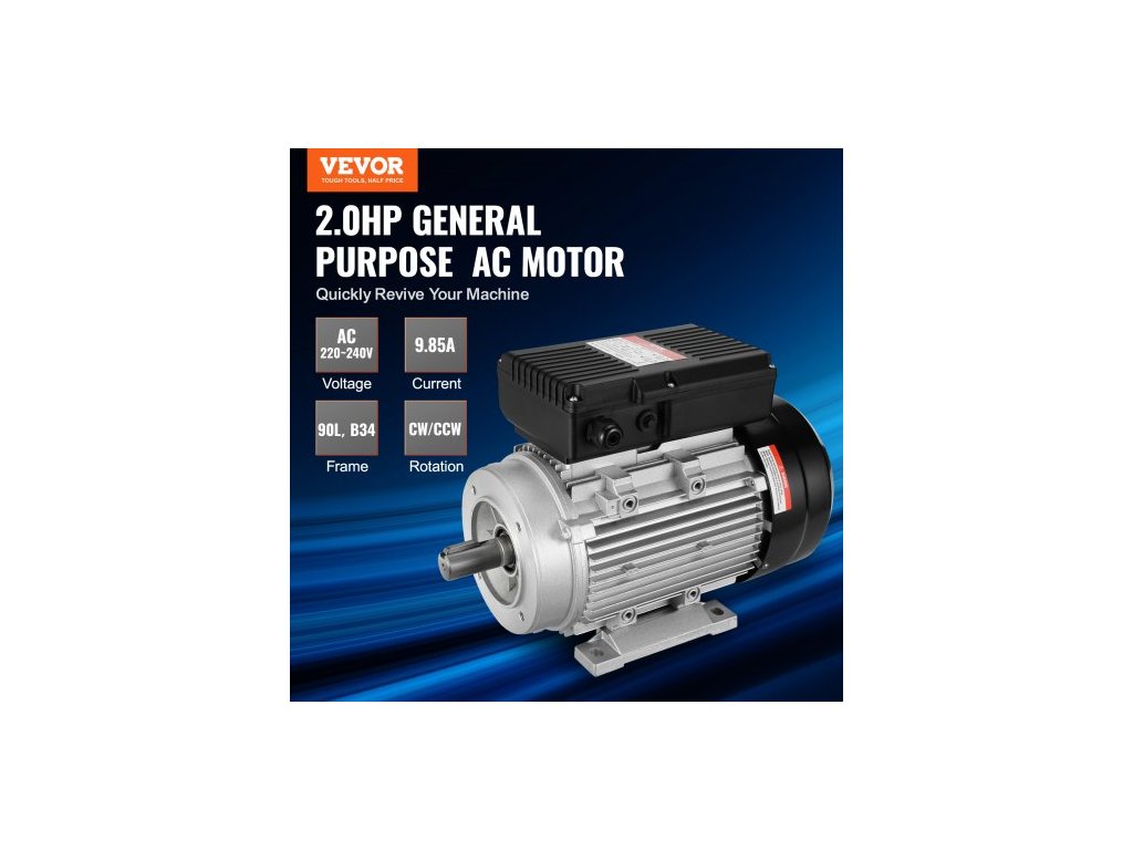 Elektromotor 1,5 kW 1400 ot./min, AC 220~240V 9,85A, 90L, rám B34, jednofázový motor vzduchového kompresoru, 24mm hřídel s perem, otáčení ve směru/proti směru hodinových ručiček pro zemědělské stroje a běžná zařízení
