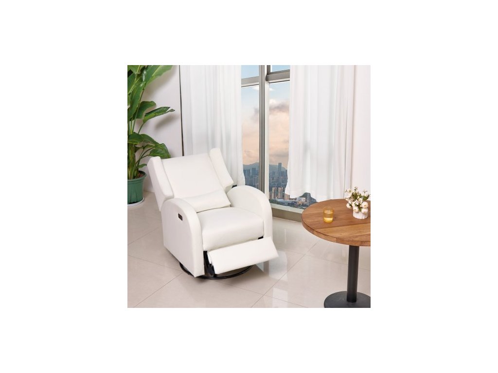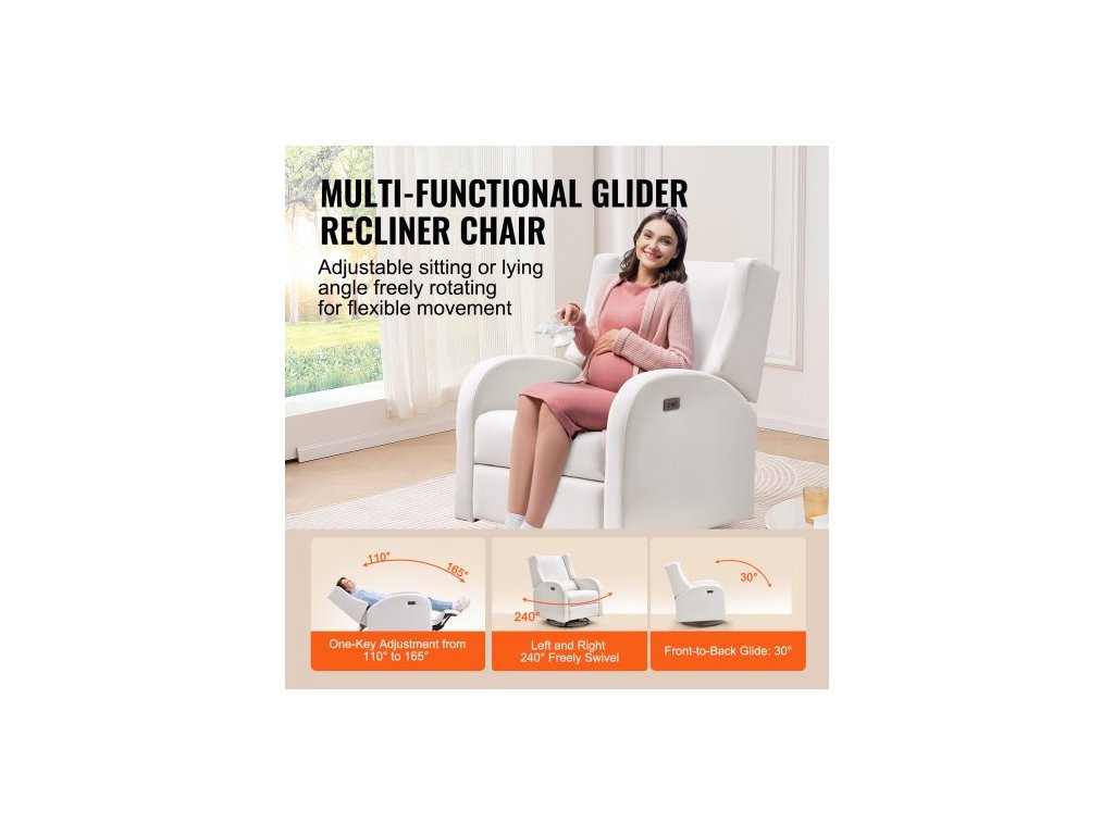 Elektronické křeslo s elektrickým pohonem a otočným kluzákem, nosnost 113,4 kg, otočné kluzákové křeslo s nastavitelným úhlem, polyesterový povrch, houpací křeslo do obývacího pokoje a ložnice, světle bílá
