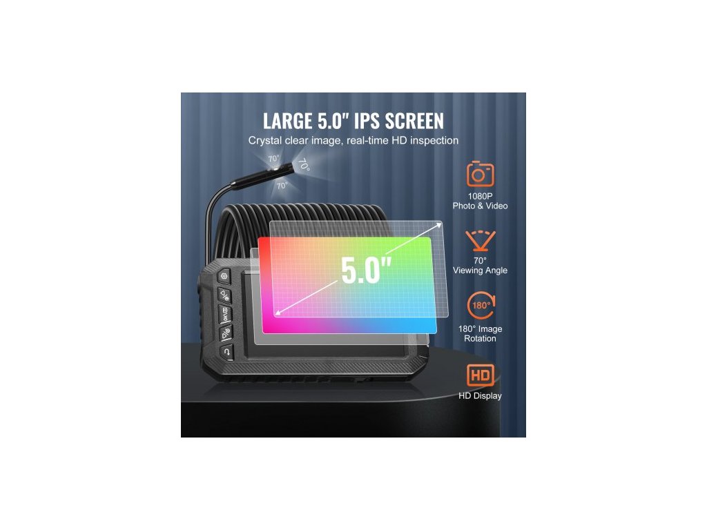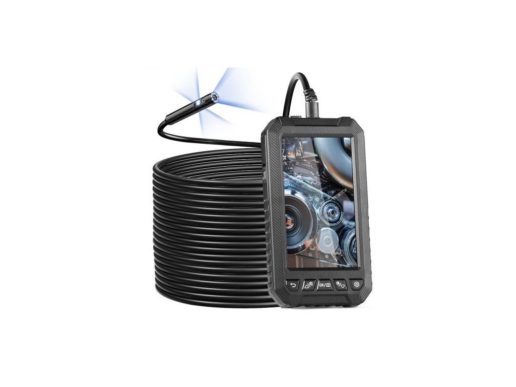 Endoskopická kamera s osvětlením, trojitý objektiv, boroskop, kabel 1499,6 cm, obrazovka 12,7 cm, nastavitelná světla, polotuhý a flexibilní kabel, velká 5" IPS obrazovka, pokročilé krystalické rozlišení, široké možnosti použití, 3stupňový zoom, počet objektivů: 3 ks, kapacita baterie: 2000 mAh, velikost obrazovky: 5" IPS, provozní napětí: 4,2 V, číslo modelu: 5003, délka kabelu: 15 m, rozměry produktu: 159 x 88 x 28 mm, čistá hmotnost: 0,813 kg, rozlišení: 1920*1080