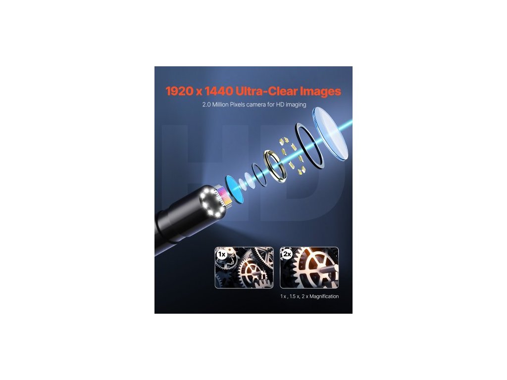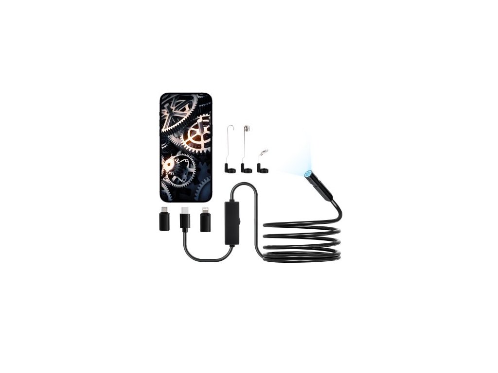 Endoskopická kamera se světlem, 1920P HD boroskop pro Android a iOS, inspekční kamera s 8 LED světly a 3m polotuhým kabelem, 2x zoom, vodotěsná kamera s krytím IP67 pro auto a instalatérství