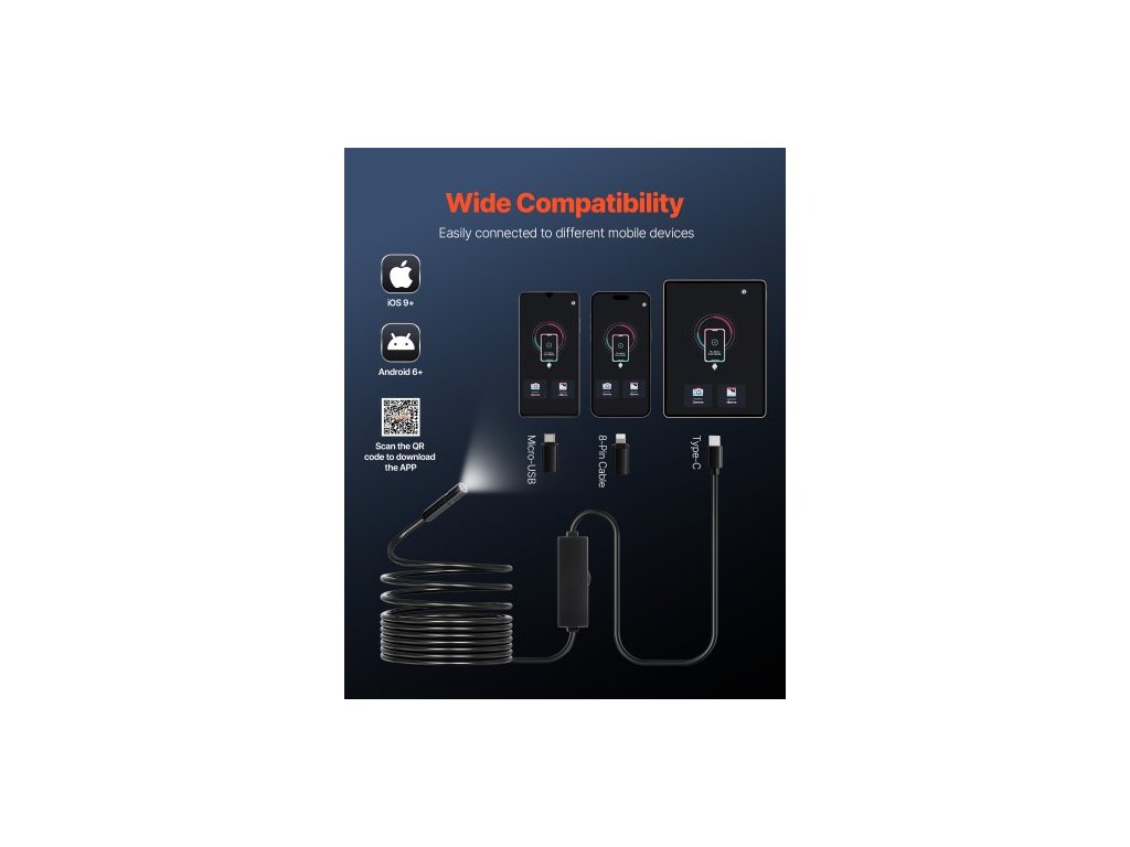 Endoskopická kamera se světlem, 1920P HD boroskop pro Android a iOS, inspekční kamera s 8 LED světly a 5m polotuhým kabelem, 2x zoom, vodotěsná kamera s hadím záběrem IP67 pro auto a instalatérství