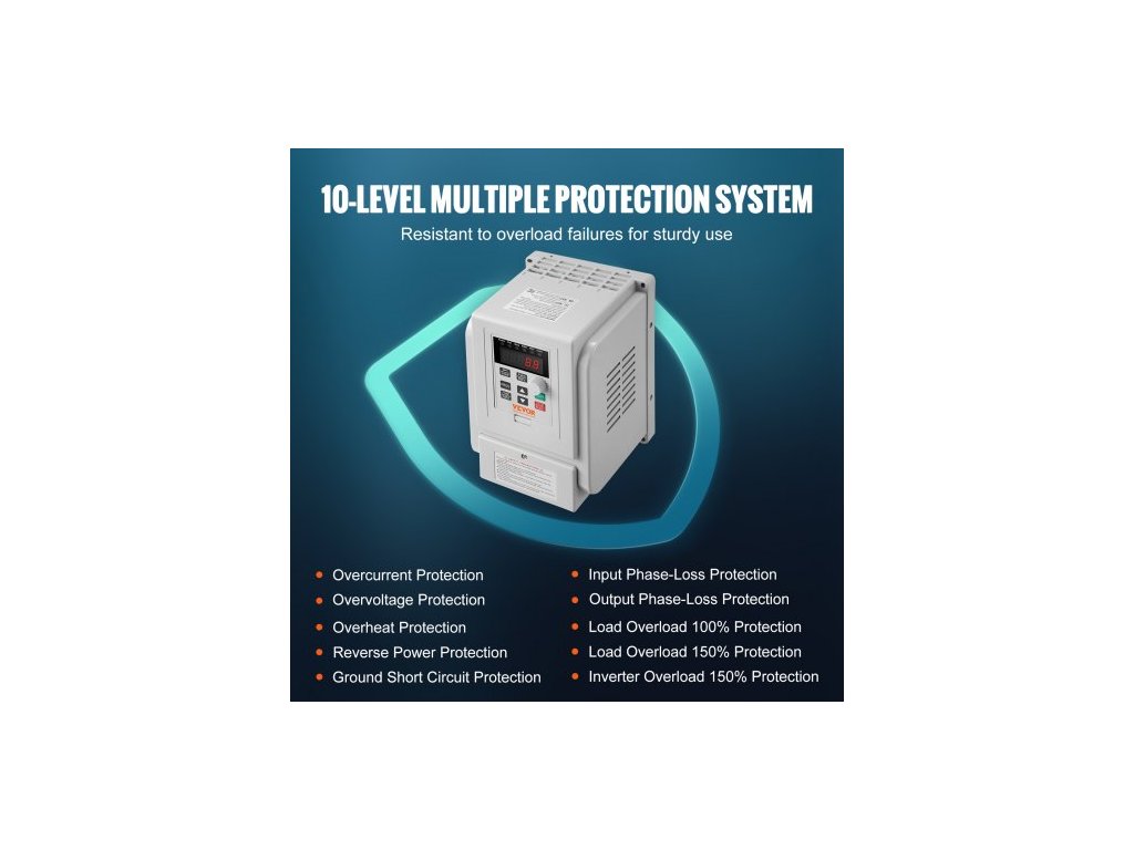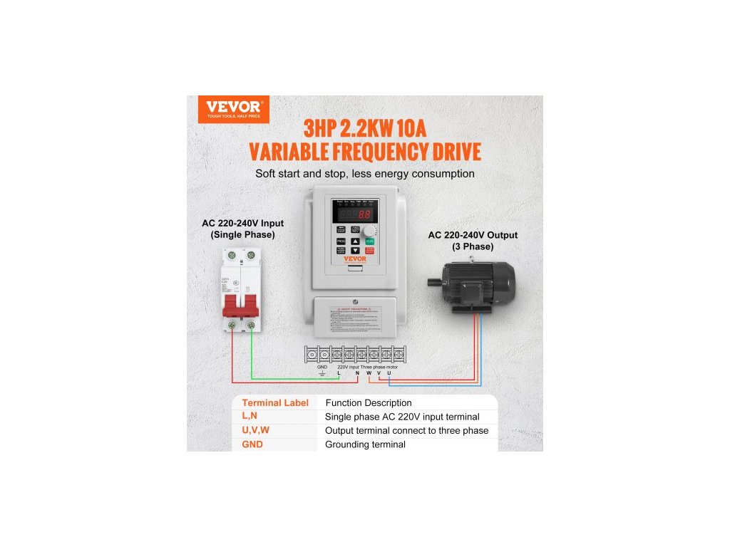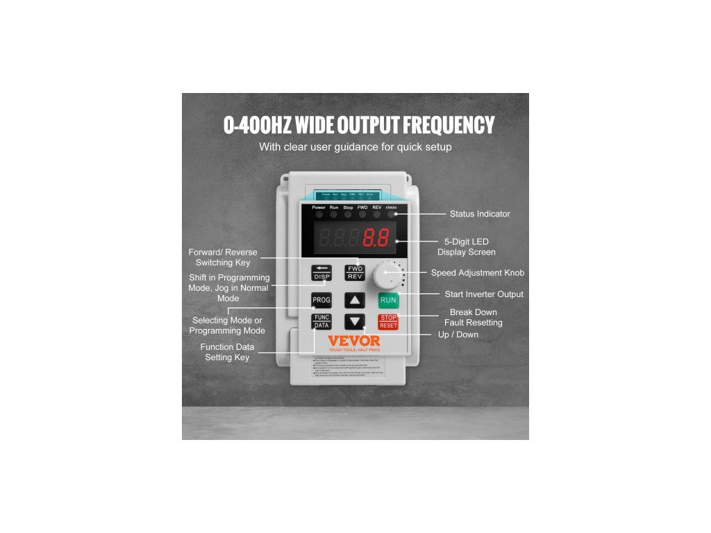 Frekvenční měnič VFD 2,2 kW 10 A 3 HP pro třífázovou regulaci otáček motoru