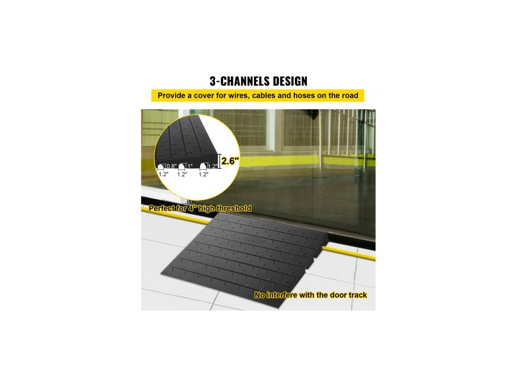 Nosnost: 1000 kg, rozměry prvního kanálu (D x V): 2 x 3 cm, barva: černá, model: WFSLYPD-2.5YC XJPD DGXC, rozměry (D x Š x V): 61 x 106 x 6,5 cm, materiál: recyklovaná guma, rozměry druhého kanálu (D x V): 1 x 1,2" / 2,5 x 3 cm, Hmotnost položky: 41,9 lbs / 19 kg, Rozměry třetího kanálu (D x V): 1,2 x 1,2" / 3 x 3 cm