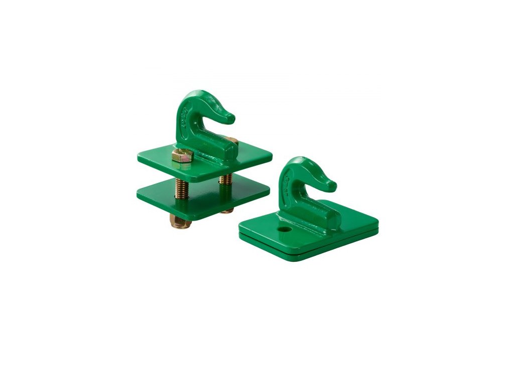 Háky na lžíci traktoru 3/8" z kované oceli třídy 70, sada 2 háků s šroubovacím uchycením, pro těžký provoz s opěrnou deskou, maximální pevnost v tahu 15 000 liber, vhodné pro lžíce traktoru, obytné vozy, pickupy a nákladní automobily.