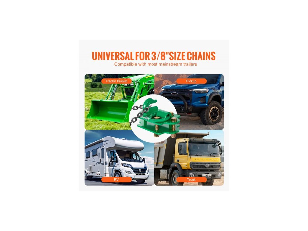 háky na traktorovou lopatu 3/8" s upevňovacím kroužkem, kovaná ocel třídy 70, balení po 2 ks, šroubovací háky s opěrnými deskami, vhodné pro traktorovou lopatu, obytný vůz, UTV, maximální pevnost v tahu 15 000 liber, zelené