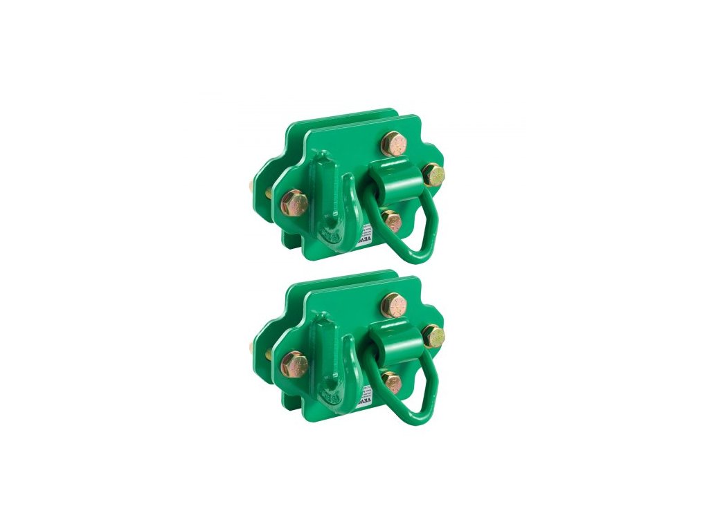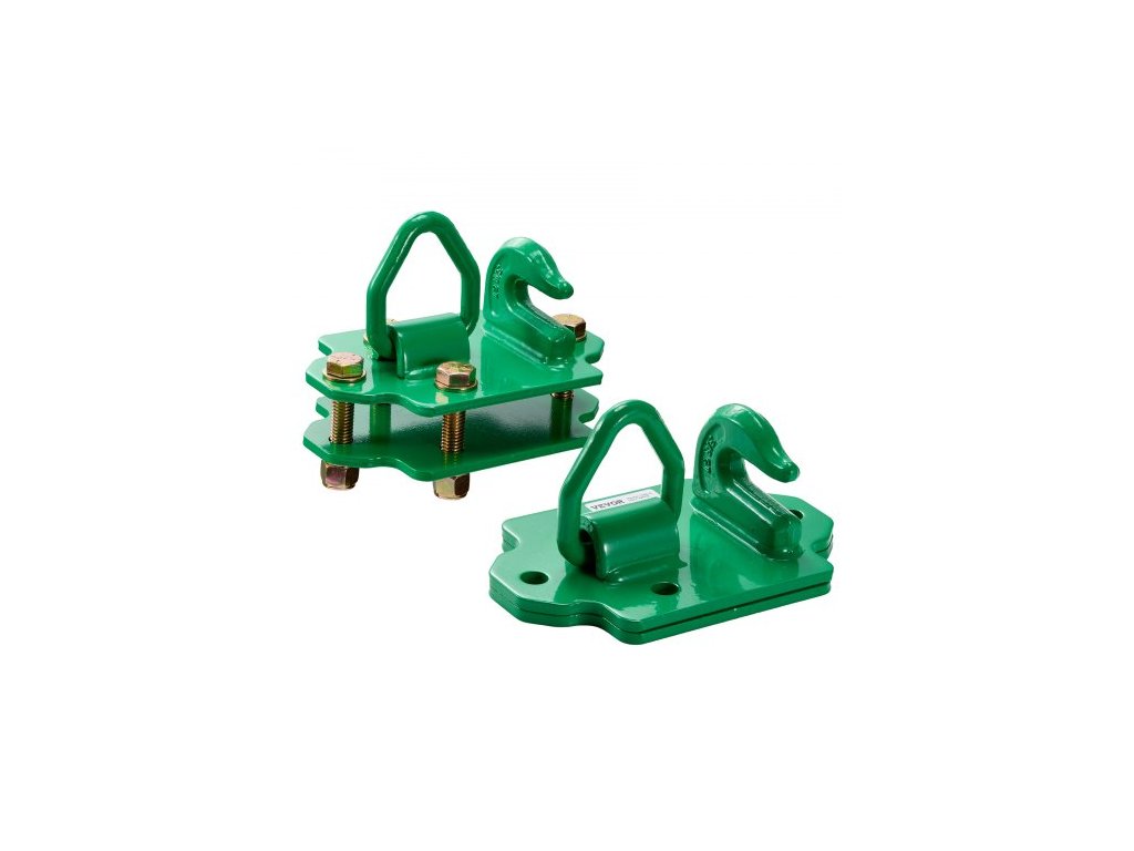 Háky na traktorové lžíce 3/8" s upevňovacím kroužkem, kovaná ocel třídy 70, sada 2 ks šroubovacích háků s opěrnými deskami, kompatibilní s traktorovými lžícemi, obytnými vozy, UTV, maximální pevnost v tahu 15 000 lbs, zelená