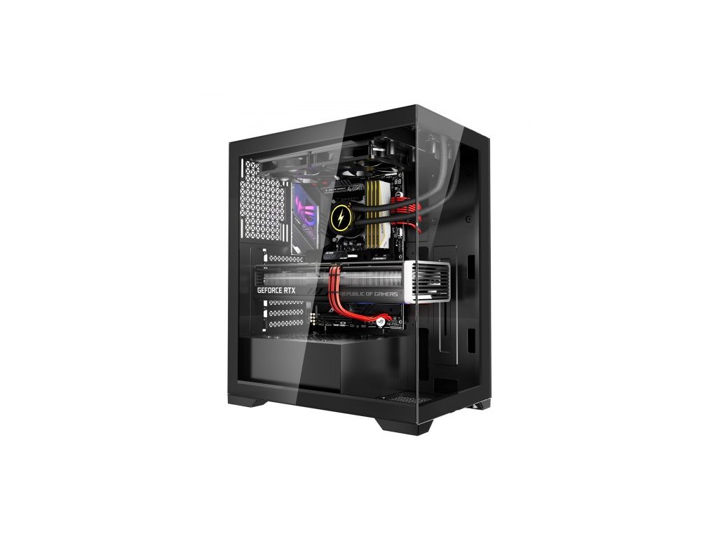 Herní počítačová skříň , Mid-Tower, počítačová skříň s tvrzeným skleněným panelem s vysokým prouděním vzduchu, prachový filtr, 2 x 120 mm ventilátory, správa kabelů, pro GPU do délky 360 mm, kompatibilní s ATX/M-ATX/ITX