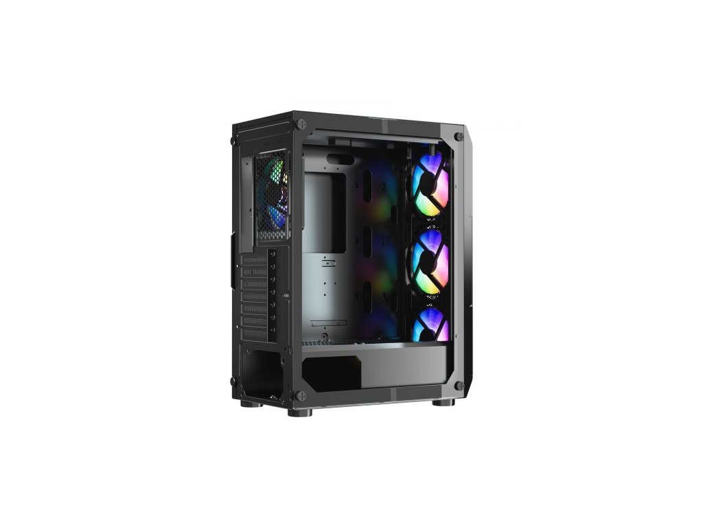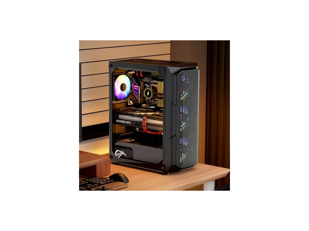 Herní počítačová skříň , Mid-Tower, počítačová skříň s tvrzeným skleněným panelem s vysokým prouděním vzduchu, prachový filtr, 4 x 120 mm ARGB ventilátory, snadná správa kabelů, pro GPU do délky 320 mm, pro ATX / M-ATX / ITX