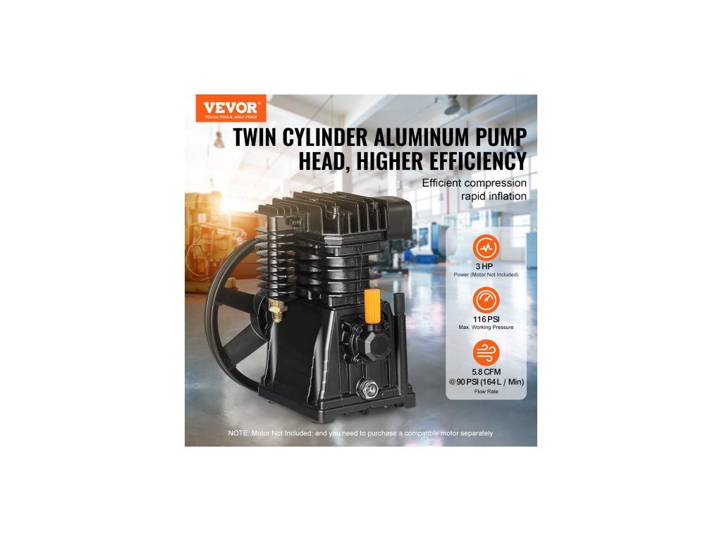 Čerpadlová hlava vzduchového kompresoru , 3HP 5,8CFM při 90 PSI, dvouválcová olejem mazaná pístová hlava vzduchového kompresoru, náhrada jednostupňového hliníkového vzduchového kompresoru s max. tlakem 116 PSI