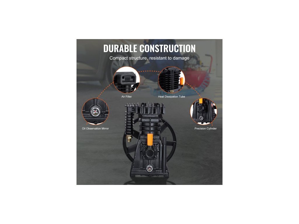 Hlava čerpadla vzduchového kompresoru , 3HP 5,8CFM @ 90PSI, dvouválcová olejem mazaná pístová hlava čerpadla vzduchového kompresoru, jednostupňová hliníková náhrada čerpadla vzduchového kompresoru s max. tlakem 116PSI