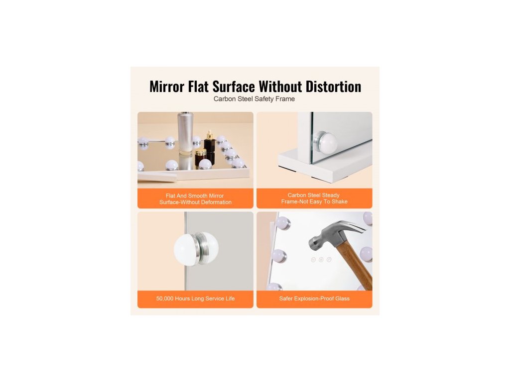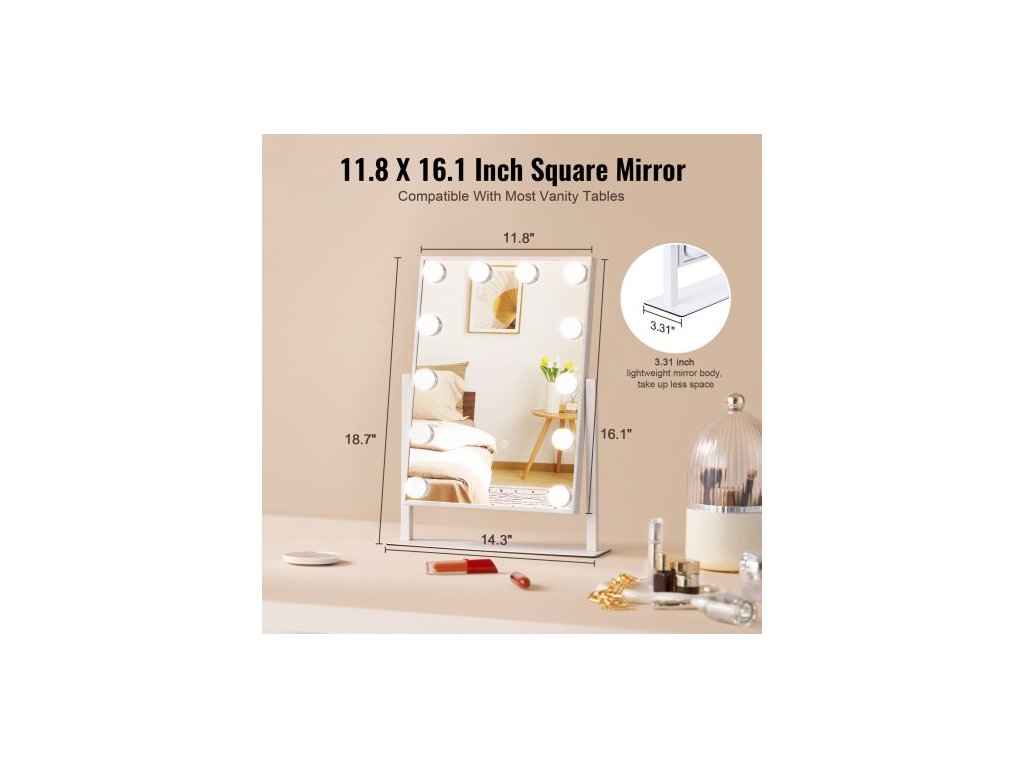 Tvar zrcadla: Čtvercový,Barva: Bílá,Číslo modelu položky: CQ3041,Rozměry položky: 14,3 x 3,3 x 18,7 palce / 364 x 84 x 475 mm,Materiál: Ekologické zrcadlo; Rám a podstavec: Ocel; Zadní panel: MDF,Čistá hmotnost: 6,5 lbs / 2,95 kg,Životnost: 50 000 hodin