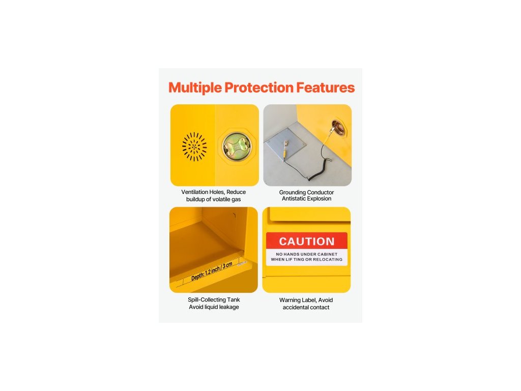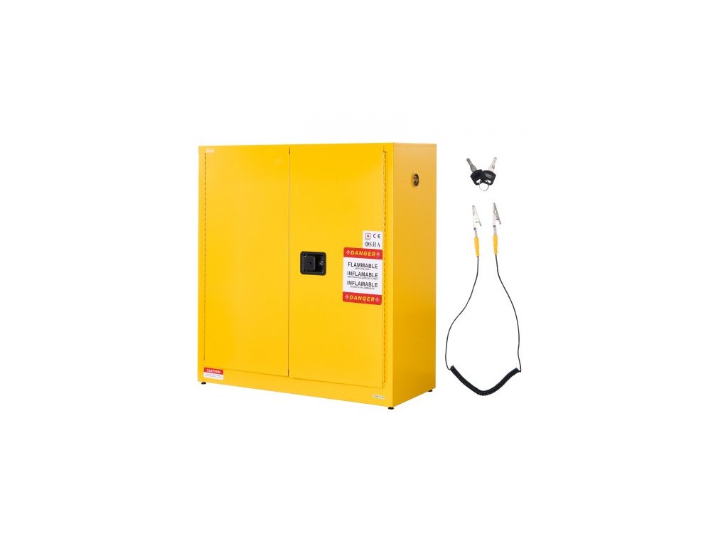 skříň na hořlavé materiály, 109,2 x 46 x 118 cm, 29galonová úložná skříň na hořlavé materiály s nastavitelnou policí, protipožární skříně z válcované a pozinkované oceli, pro komerční, průmyslové a domácí použití, žlutá
