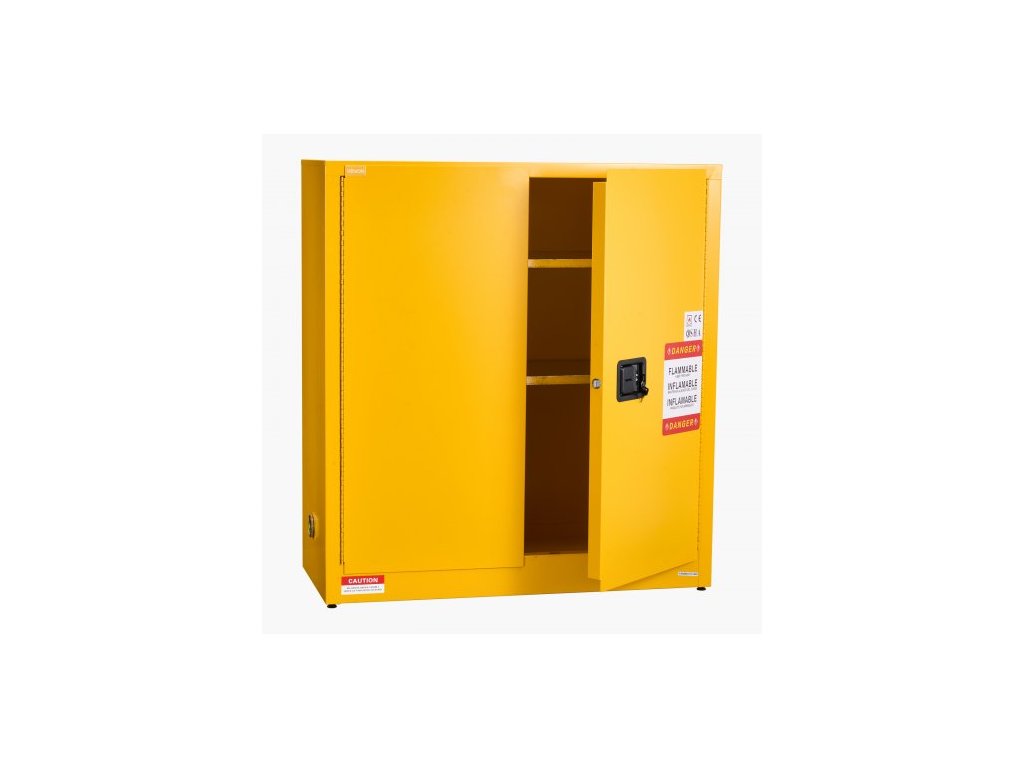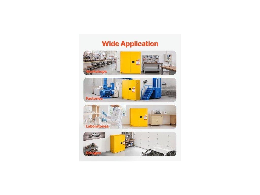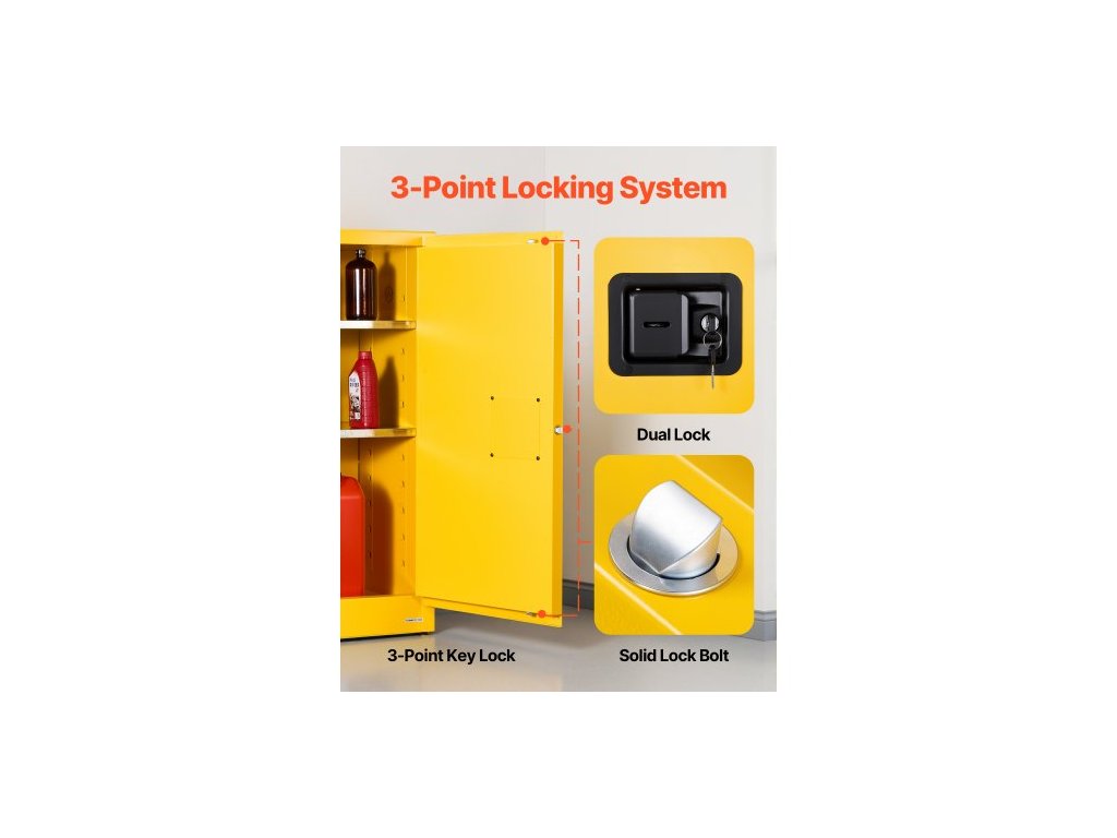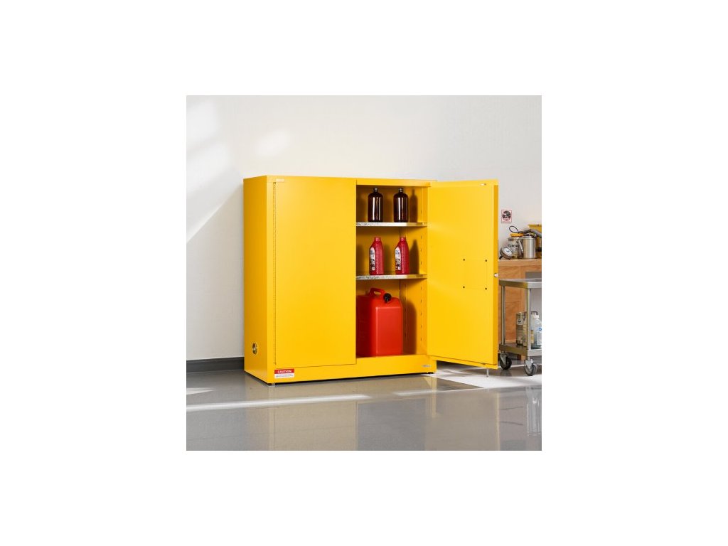 Hořlavá skříň , 109,2 x 46 x 118 cm, 29 galonů, hořlavá skladovací skříň s nastavitelnou policí, za studena válcovaná a pozinkovaná ocel, pro komerční, průmyslové a domácí použití, žlutá