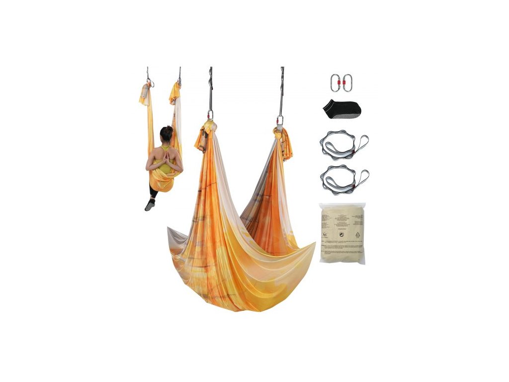 Houpací síť a houpačka na leteckou jógu, 5,5 yardů, startovací sada pro leteckou jógu se 100gsm nylonovou tkaninou, kompletní montážní hardware a snadný návod k instalaci, antigravitační létání pro všechny úrovně fitness a kulturistiky, zlatá