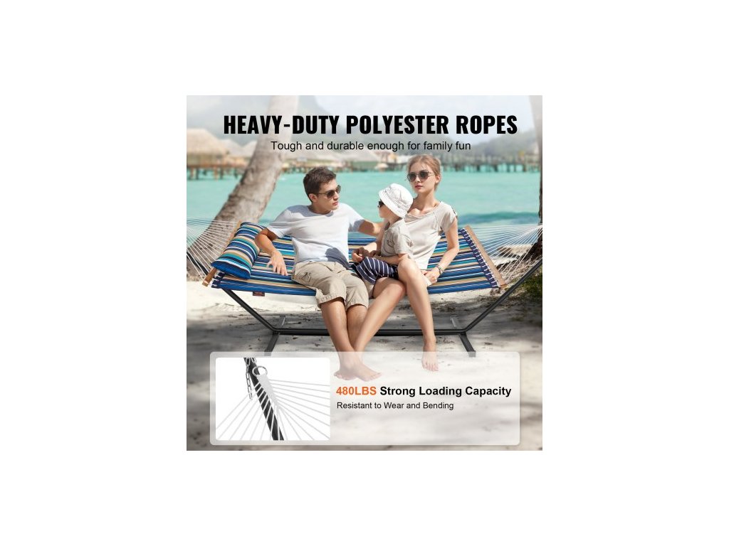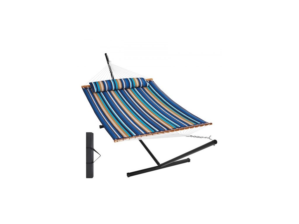 Houpací síť pro dvě osoby se stojanem v ceně, vysoká nosnost 220 kg, dvojitá houpací síť s 3,6 m ocelovým stojanem a přenosnou taškou a polštářem, volně stojící houpací síť pro venkovní terasu, dvůr, pláž