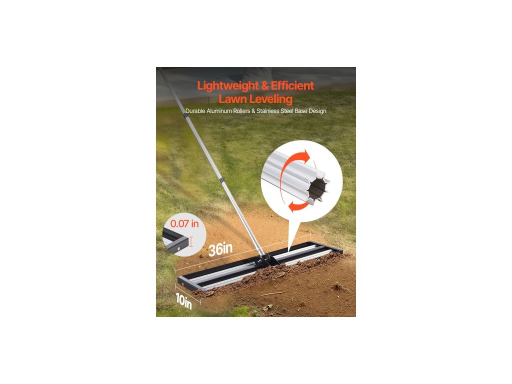 Hrábě na zarovnávání trávníku , zarovnávač trávníku s nastavitelnou rukojetí 83,9 palce, základová deska 36x10 palců, odolná a nerezová kovová zarovnávač půdy, nástroj pro snadné zarovnávání trávníku pro golfové hřiště