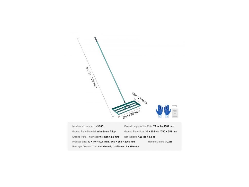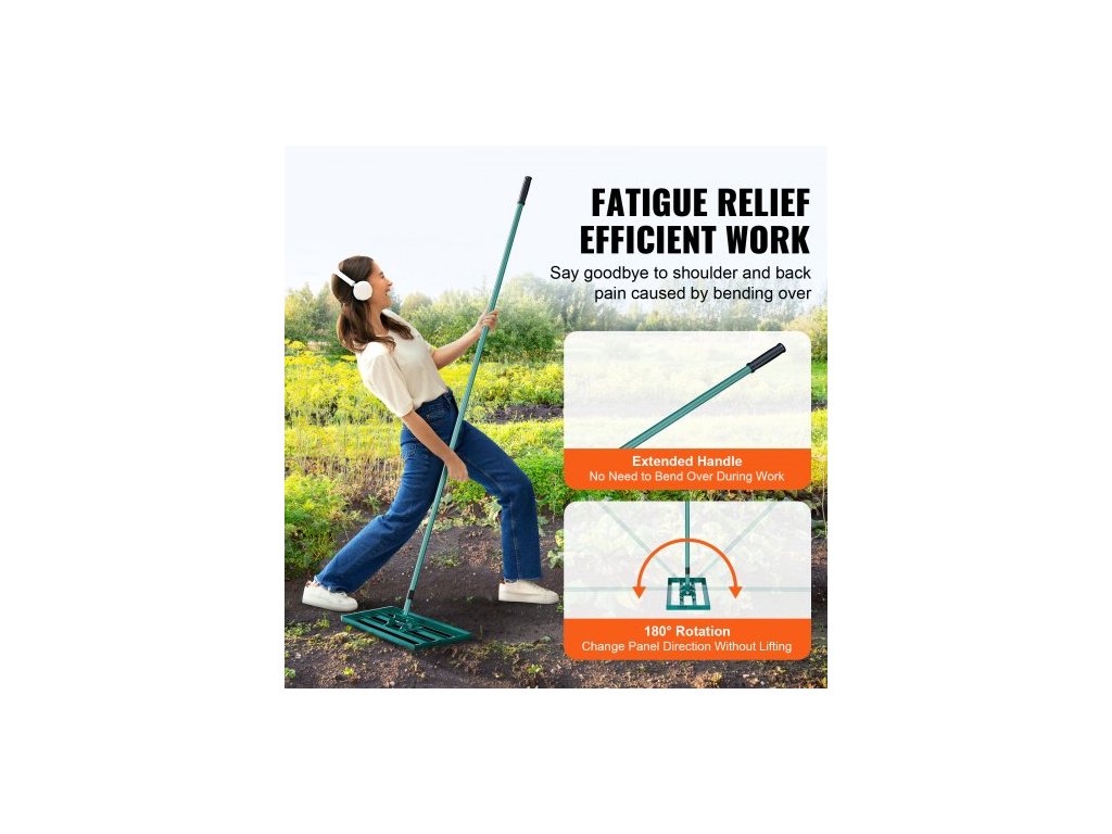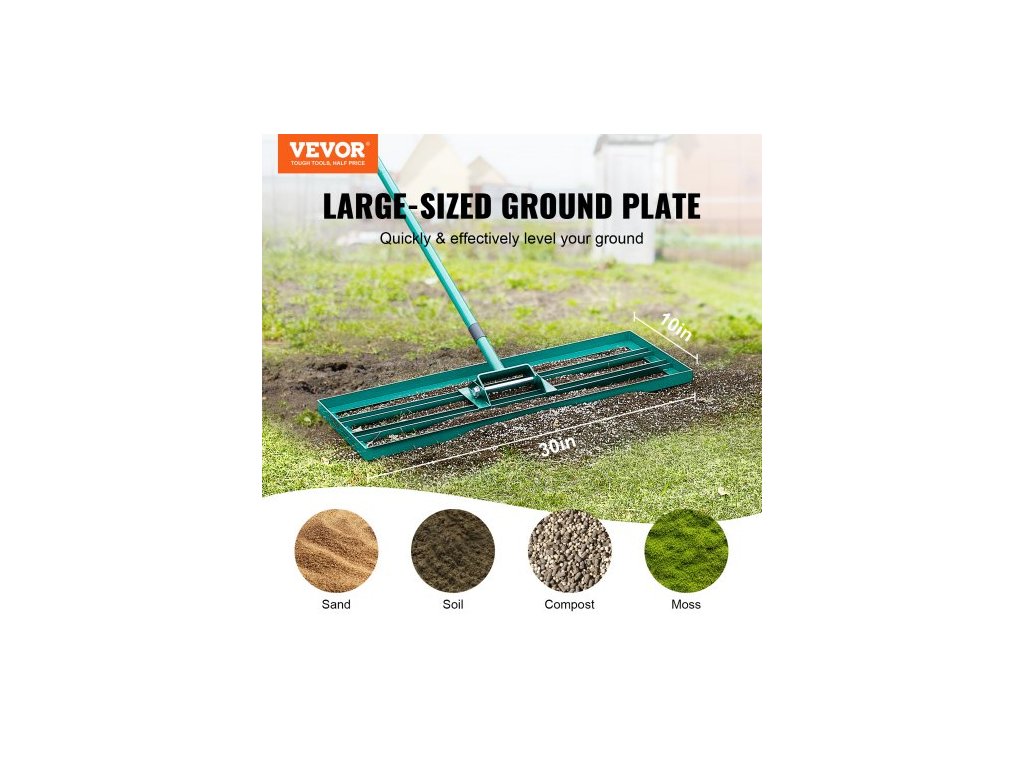 hrable na trávník, zarovnávací nástroj na trávník 30"x10", vysoce odolný zarovnávač trávníku s prodlouženou ocelovou rukojetí 78", zarovnávací hrábě na trávník vhodné pro zahradu, golfový trávník, farmu