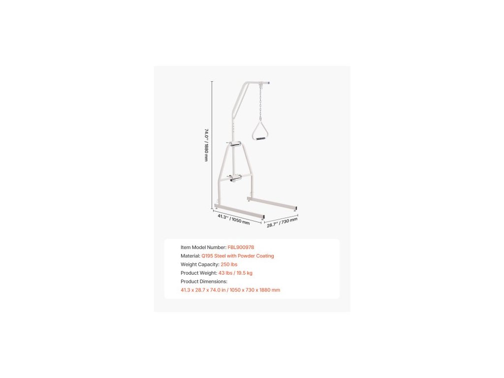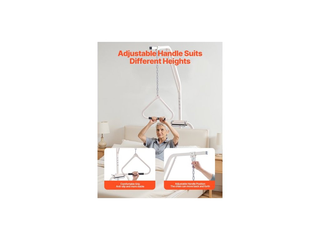 Hrazda pro mobilitu postele, hrazda na postel s úchyty a podlahovým stojanem, nosnost 113 kg, pomocná hrazda pro seniory, pacienty a osoby se zdravotním postižením, vhodná pro domácí péči, nemocnice, pečovatelské domy