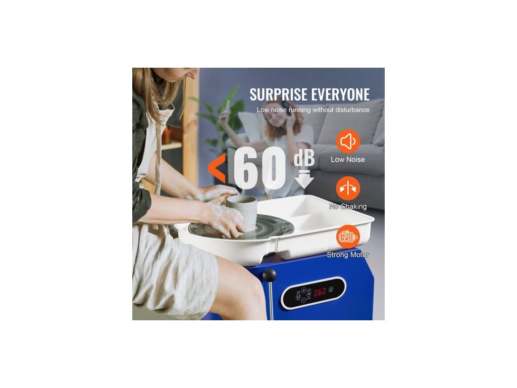 Maximální výkon: 450 W 220 V,Průměr otočného talíře: 28 cm,Směr otáčení: Ve směru a proti směru hodinových ručiček,Maximální zatížení hlíny: 8 kg,Provozní hluk: 60 dB,Čistá hmotnost: 12,7 kg,Rozměry ABS misky: 47,5 x 33,5 x 8 cm,Rychlost otáčení: 60–300 ot./min.,Rozměry výrobku: 49,5 x 33,5 x 3,1 cm 50 x 38 x 35 cm