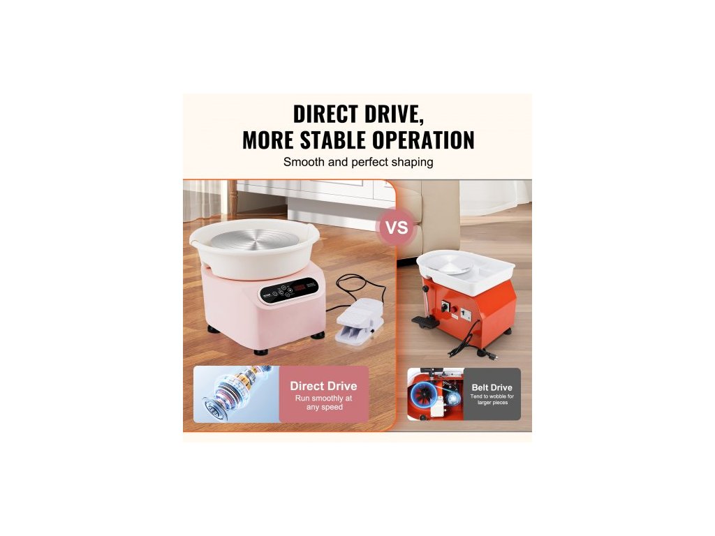Hrnčířský kruh 11"/27,9 cm Keramický kruh s nožním pedálem a dotykovou obrazovkou, zástěra 450 W, růžová