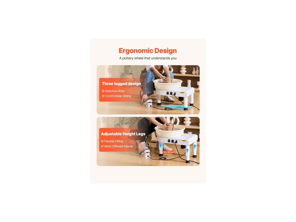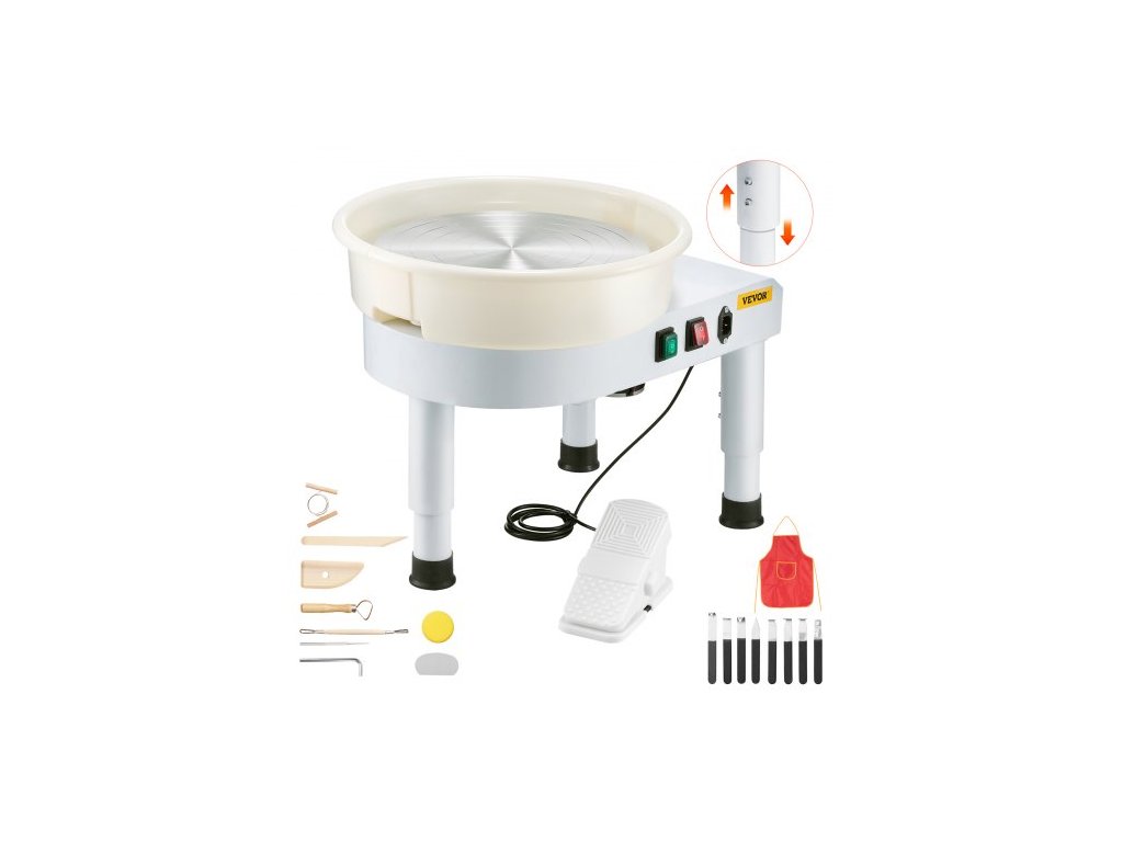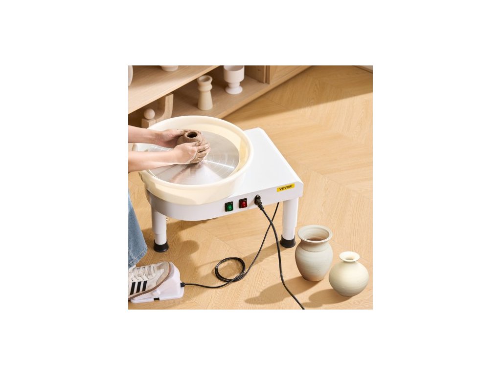 Hrnčířský kruh , 35cm keramický tvarovací stroj na kruhy, nastavitelná rychlost nožního pedálu 60-300 ot./min, nastavitelná zvedací noha, odnímatelná mísa, kompletní sada příslušenství pro umělecké a řemeslné práce, bílá