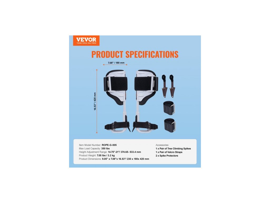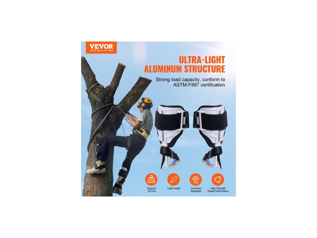 Hroty na lezení po stromech, 1 pár hliníkových horolezeckých ostruh, nosnost 175 kg, vybavení pro lezení po stromech s popruhy a chrániči hrotů, vybavení pro arboristy, horolezce, lov, sběr ovoce, bílé